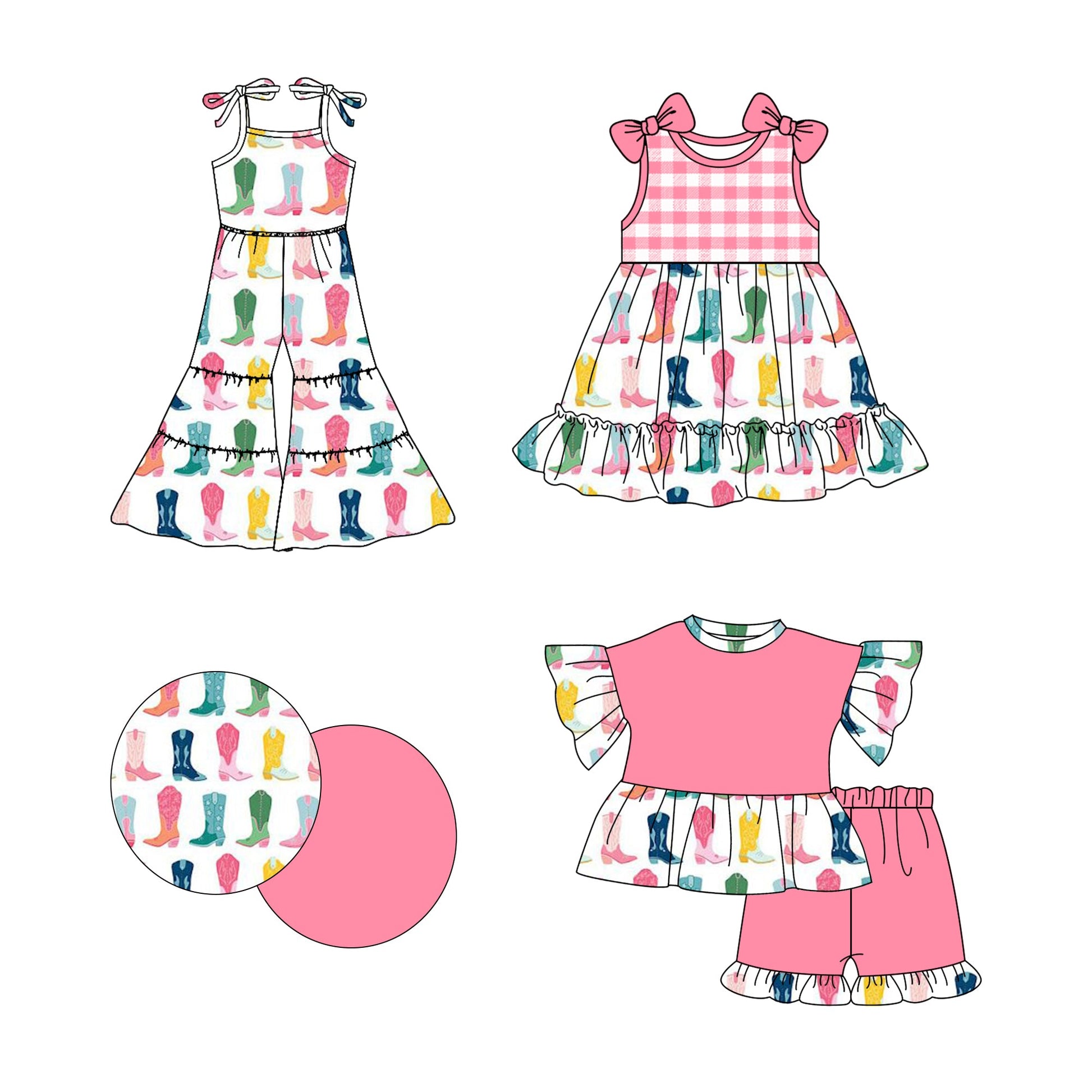 Baby Girl Western Boots Checked Sibling Jumpsuit Dress Set ( Moq 5 Each Style ) 2.21
