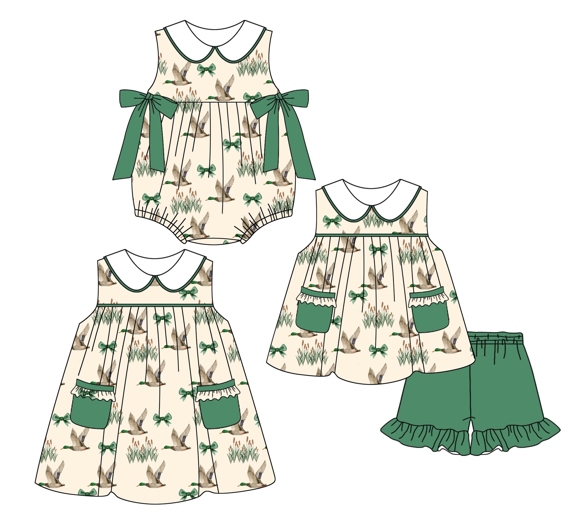 Baby Girl Ducks Green Bows Sibling Romper Dress Set ( Moq 5 Each Style ) 2.21