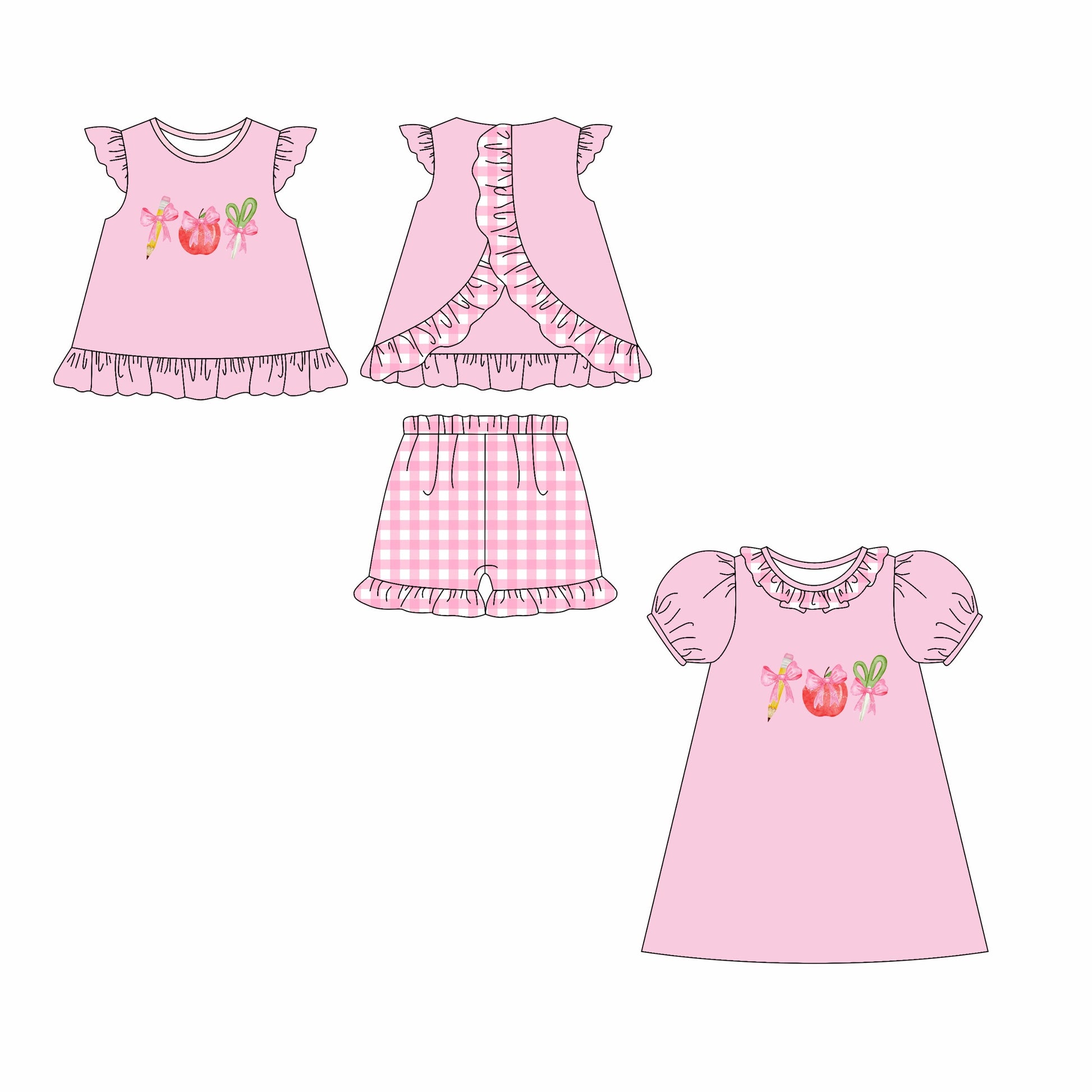 Baby Gir Back To School Pink Bows Sibling Dress Set ( Moq 5 Each Style ) 2.21