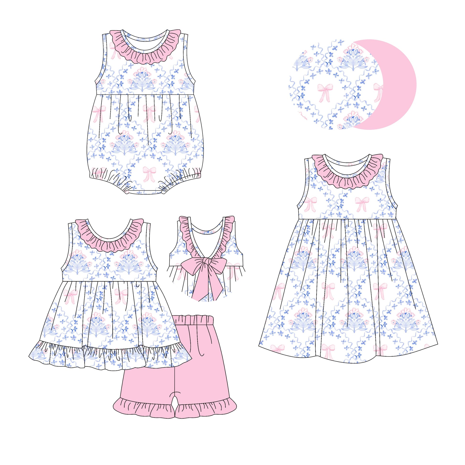 Baby Girl Pink Bows Flower Sibling Romper Dress Set ( Moq 5 Each Style ) 2.25