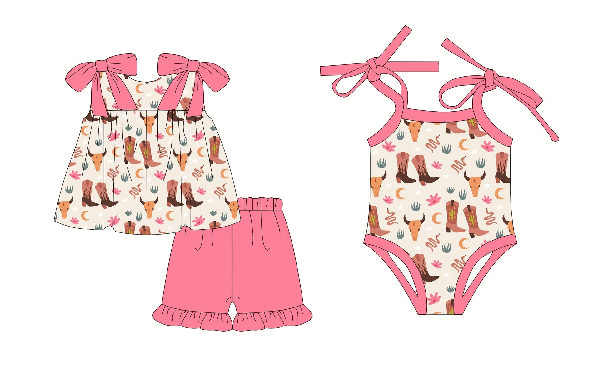 Baby Girl Western Boots Cow Sibling Romper Set ( Moq 5 Each Style ) 2.26