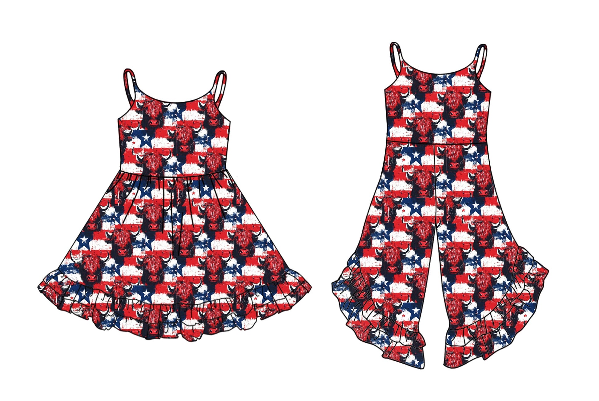 Baby Girl Straps July 4th Cow Stars Sibling Jumpsuit Dress ( Moq 5 Each Style ) 2.27