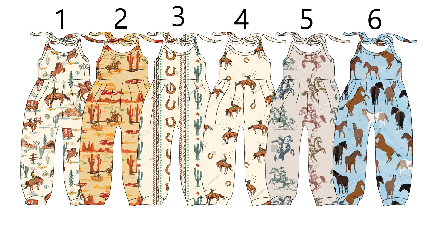 Baby Girl Straps Western Rodeo Horse Sibling Jumpsuit ( Moq 5 Each Style ) 2.28