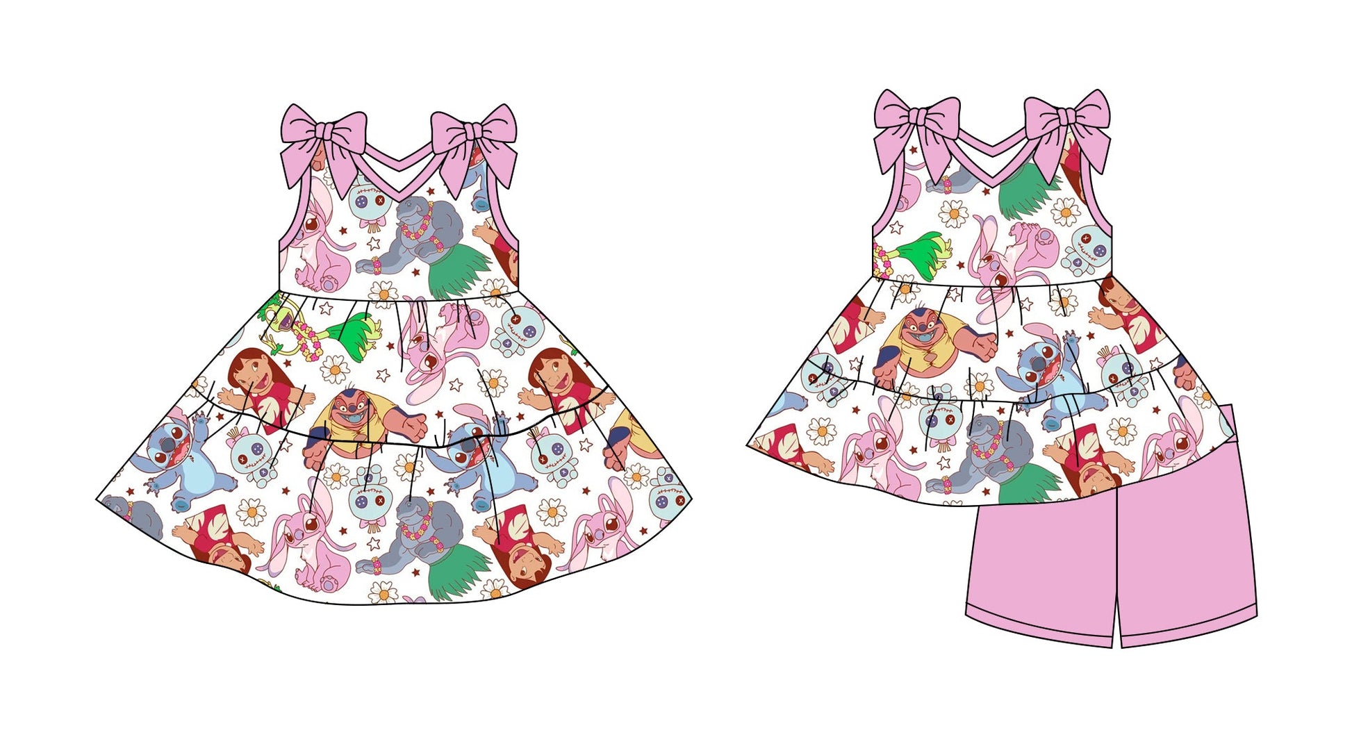 Baby Girl Straps Bows Cartoon Flower Summer Sibling Dress Set ( Moq 5 Each Style ) 2.28
