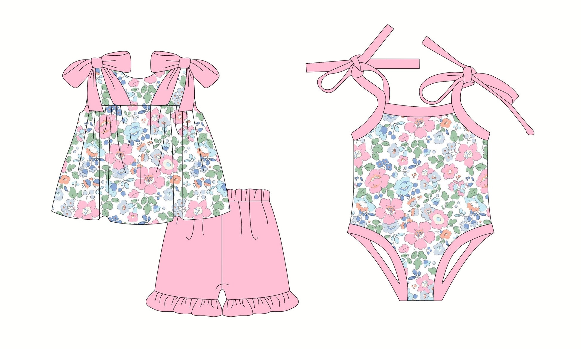 Baby Girl Straps Bows Flower Pink Sibling Romper Set ( Moq 5 Each Style ) 2.28