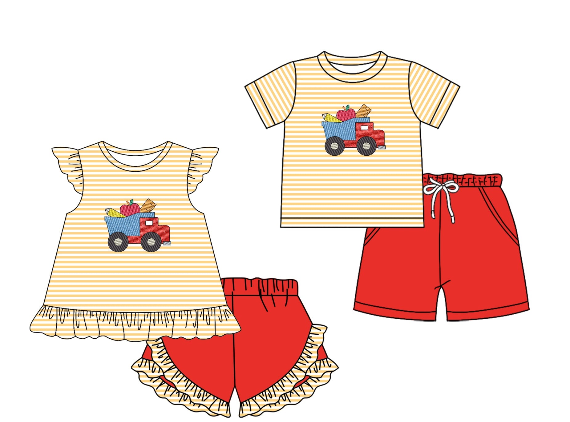 Baby Boy Girl Back To School Apple Trucks Stripes Sibling Set ( Moq 5 Each Style ) 2.7