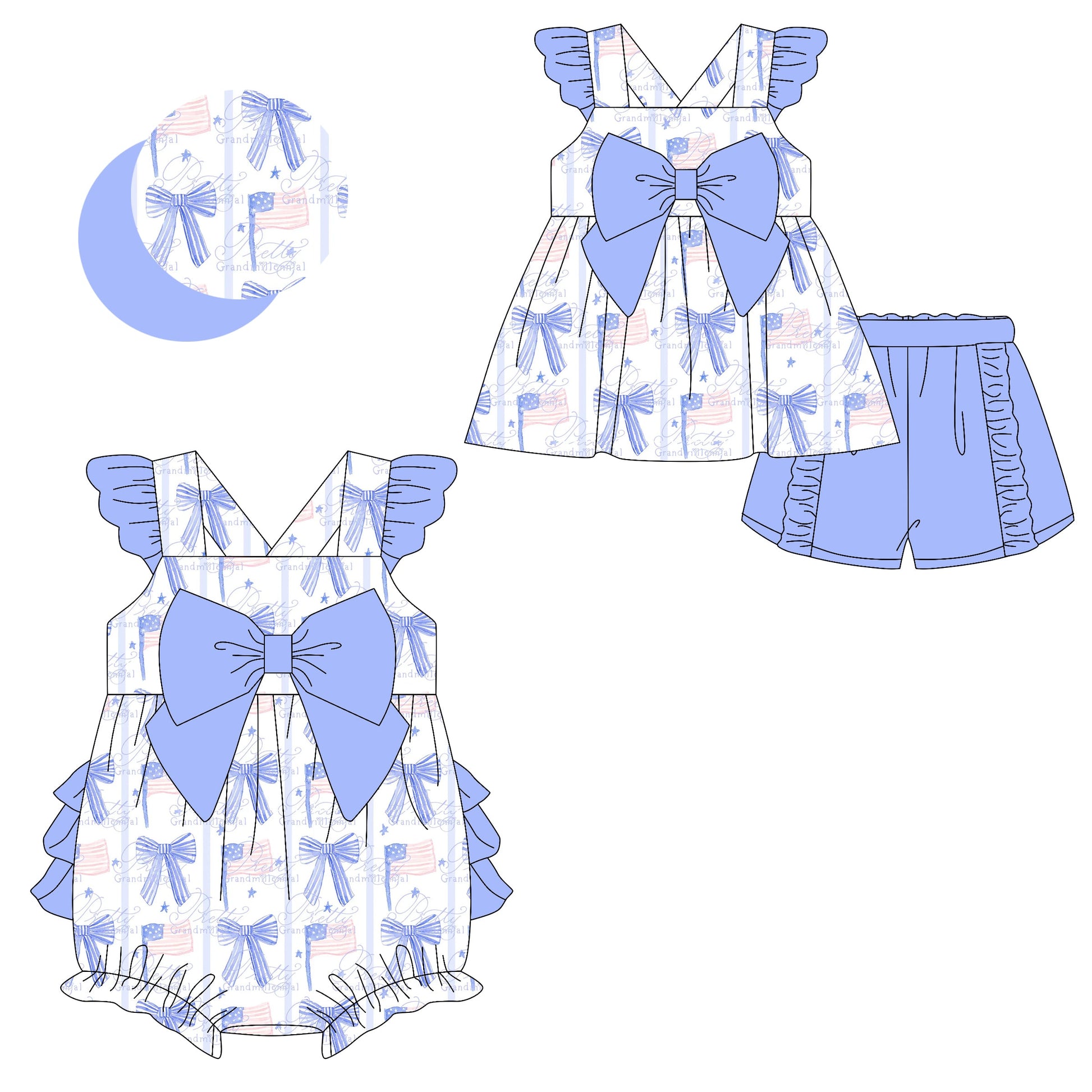 Baby Girl Bows Flags July 4th Sibling Romper Set ( Moq 5 Each Style ) 2.8