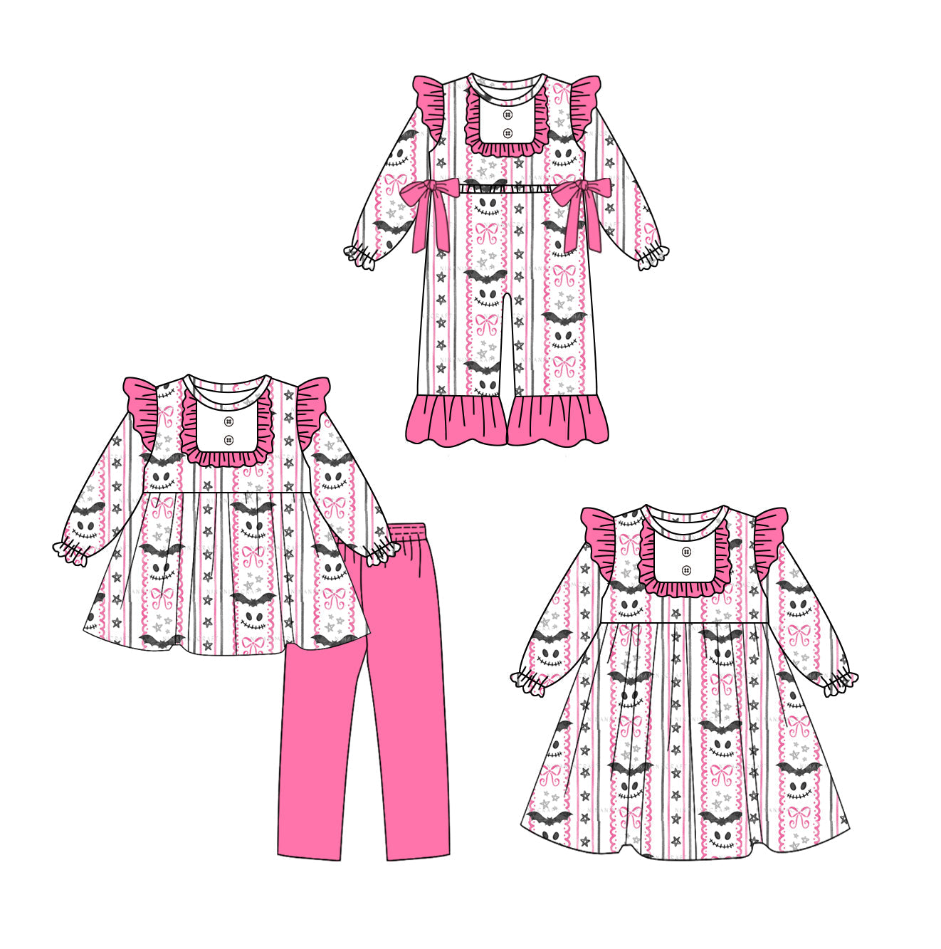 ( Moq 5 Each Style ) Baby Girl Toddler Ghost Bows Halloween Sibling Romper Dress Set