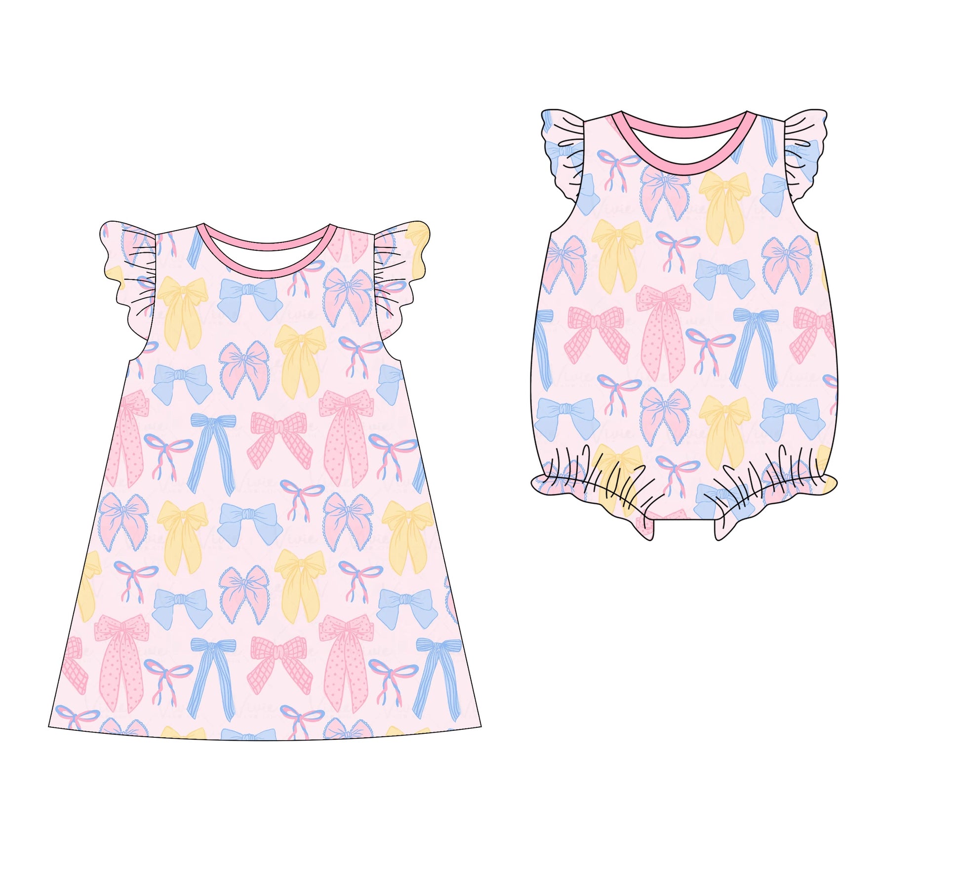 Baby Girl Short Sleeves Bows Pink Sibling Romper Dress ( Moq 5 Each Style ) 3.10