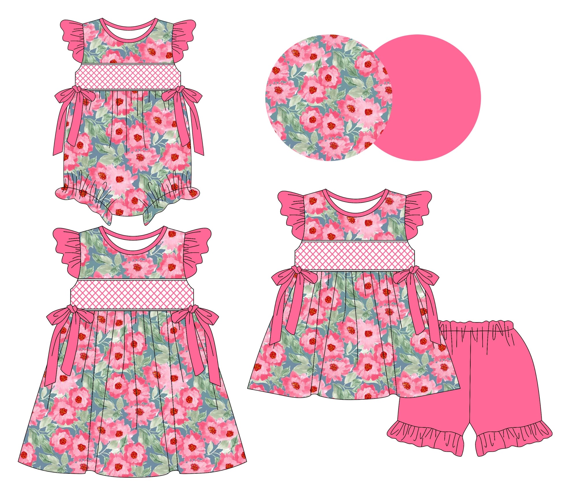 Baby Girl Short Sleeves Flower Bows Sibling Romper Dress Set ( Moq 5 Each Style ) 3.10