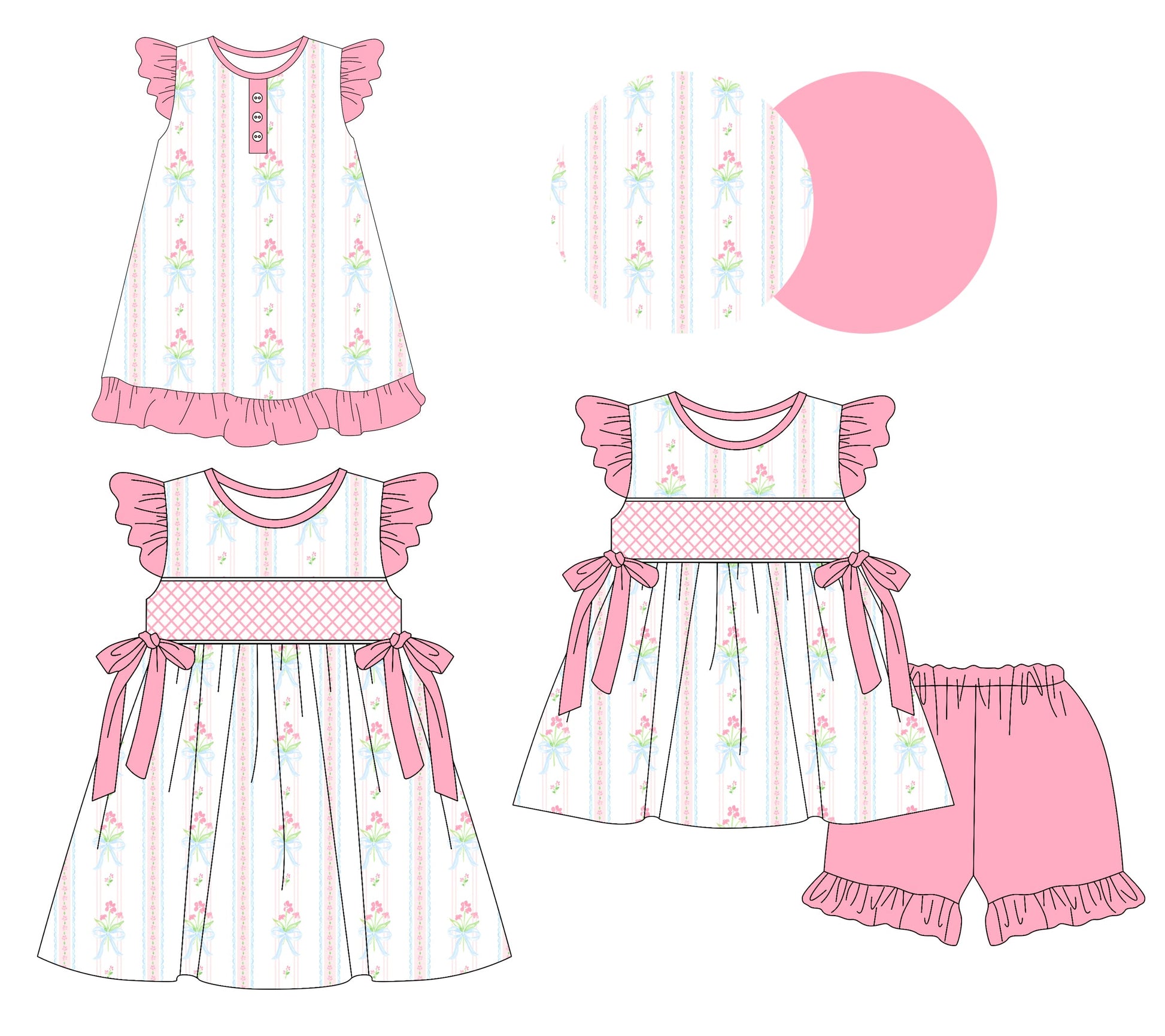 Baby Girl Short Sleeves Floral Bows Sibling Romper Dress Set ( Moq 5 Each Style ) 3.11