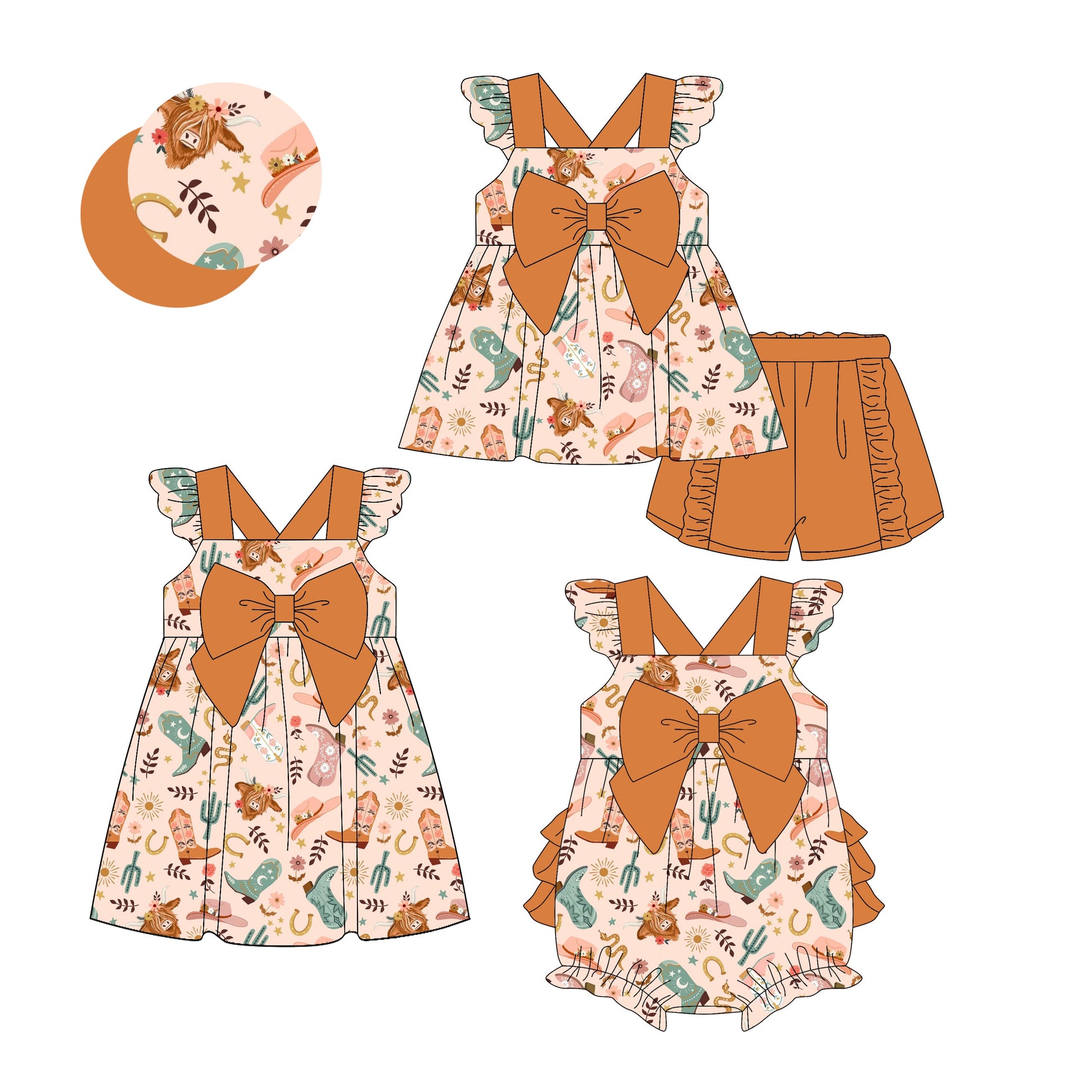 Baby Girl Western Boots Bows Sibling Romper Dress Set ( Moq 5 Each Style ) 3.13