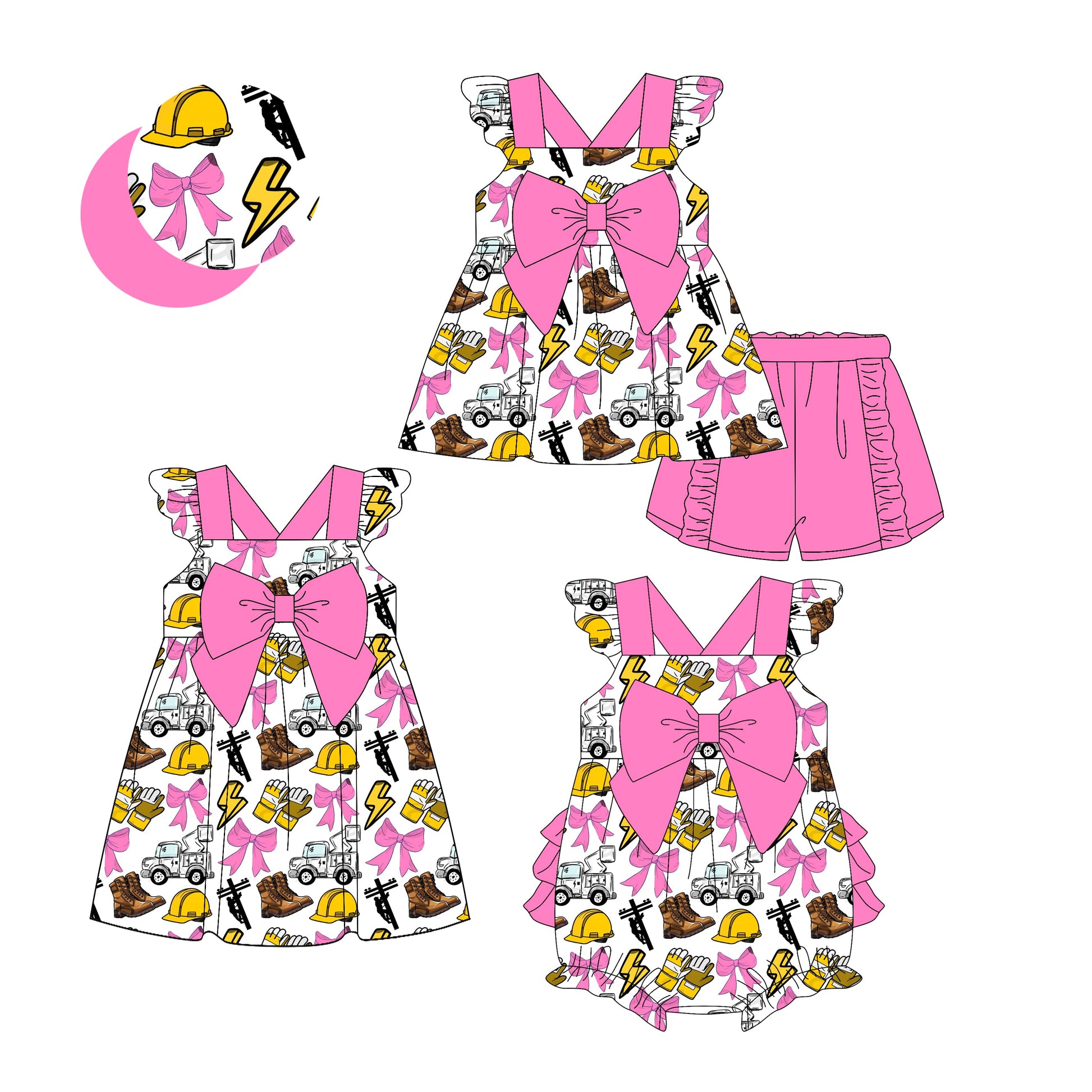 Baby Girl Trucks Pink Bows Sibling Romper Dress Set ( Moq 5 Each Style ) 3.13