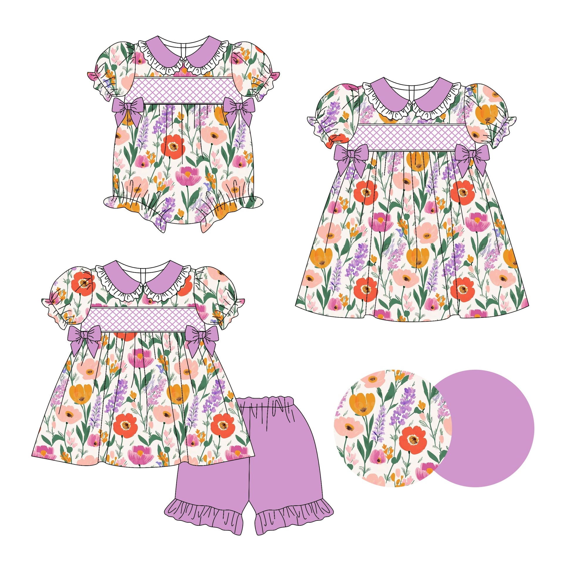 Baby Girl Short Sleeves Flower Purple Bows Sibling Romper Dress Set ( Moq 5 Each Style ) 3.14