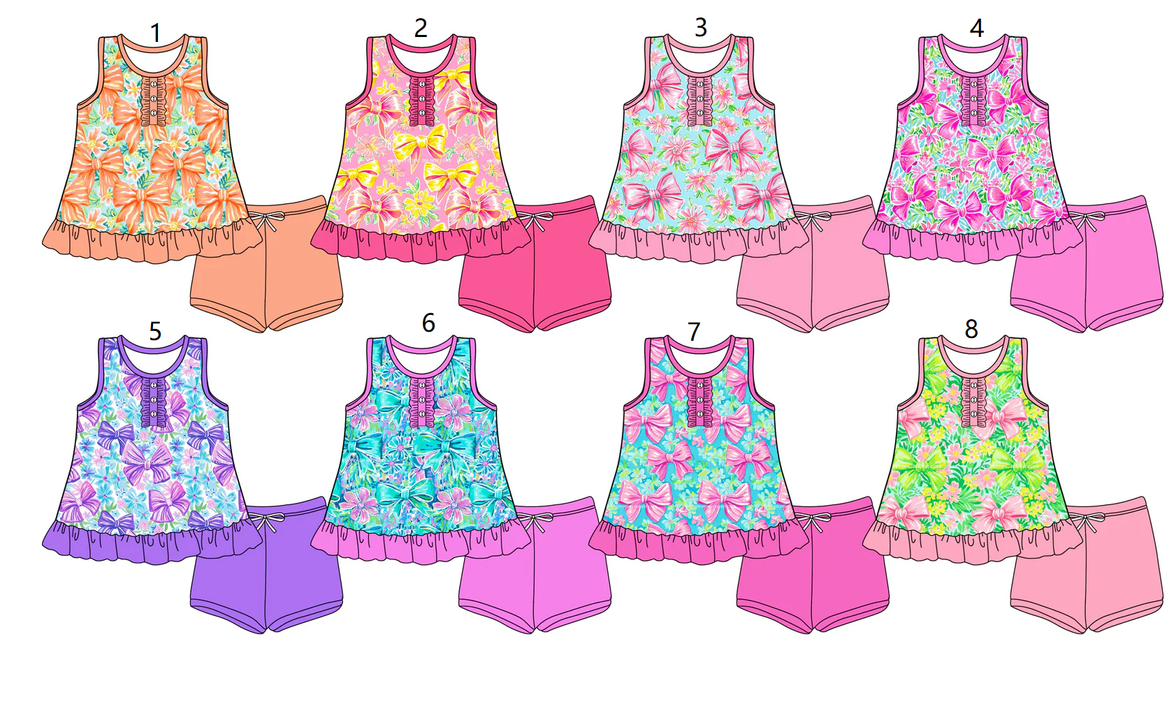 Baby Girl Flower Bows Tops Cottons Shorts Sibling Set ( Moq 5 Each Style ) 3.15