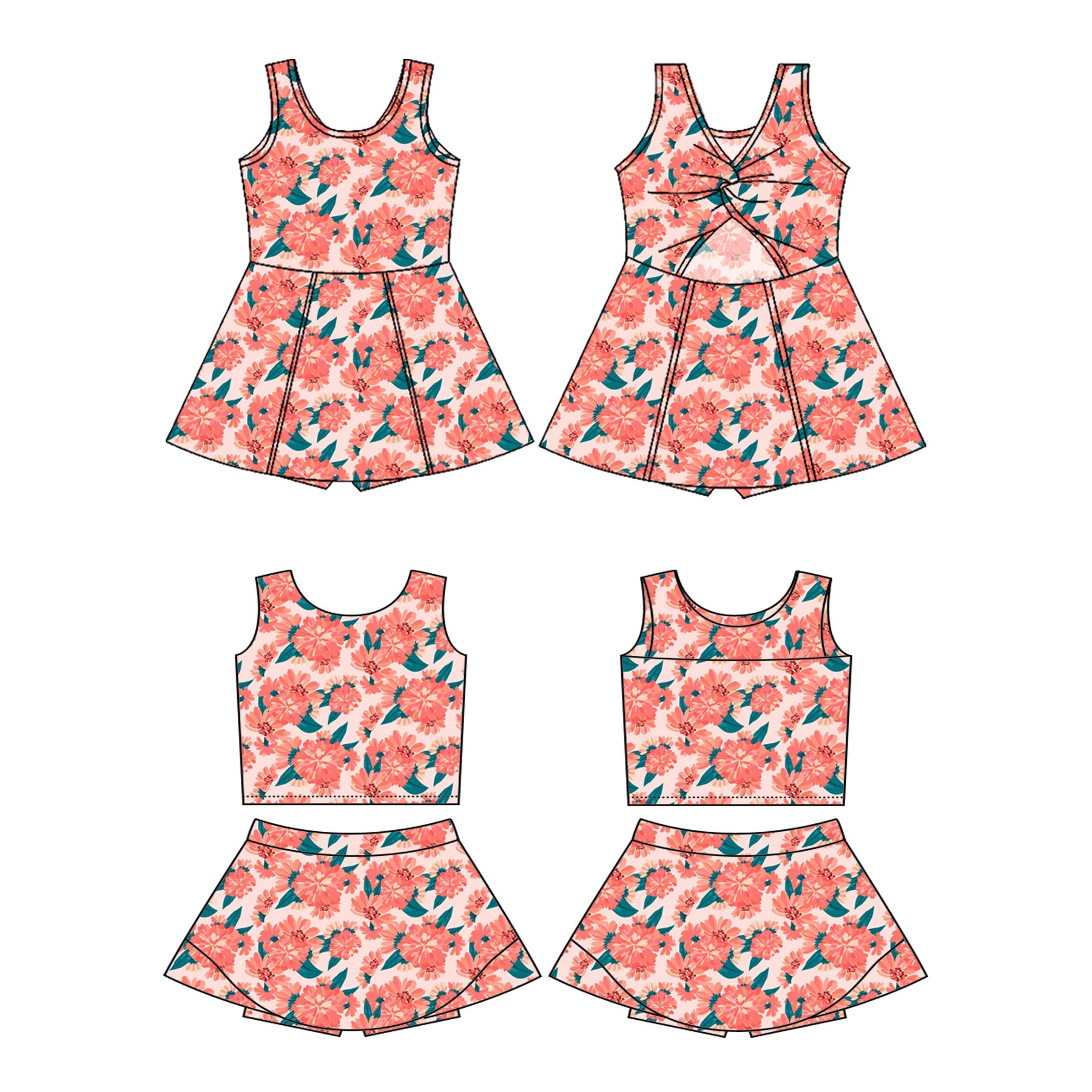 Baby Girl Sleeveless Flower Sibling Skorts Dress Set ( Moq 5 Each Style ) 3.18