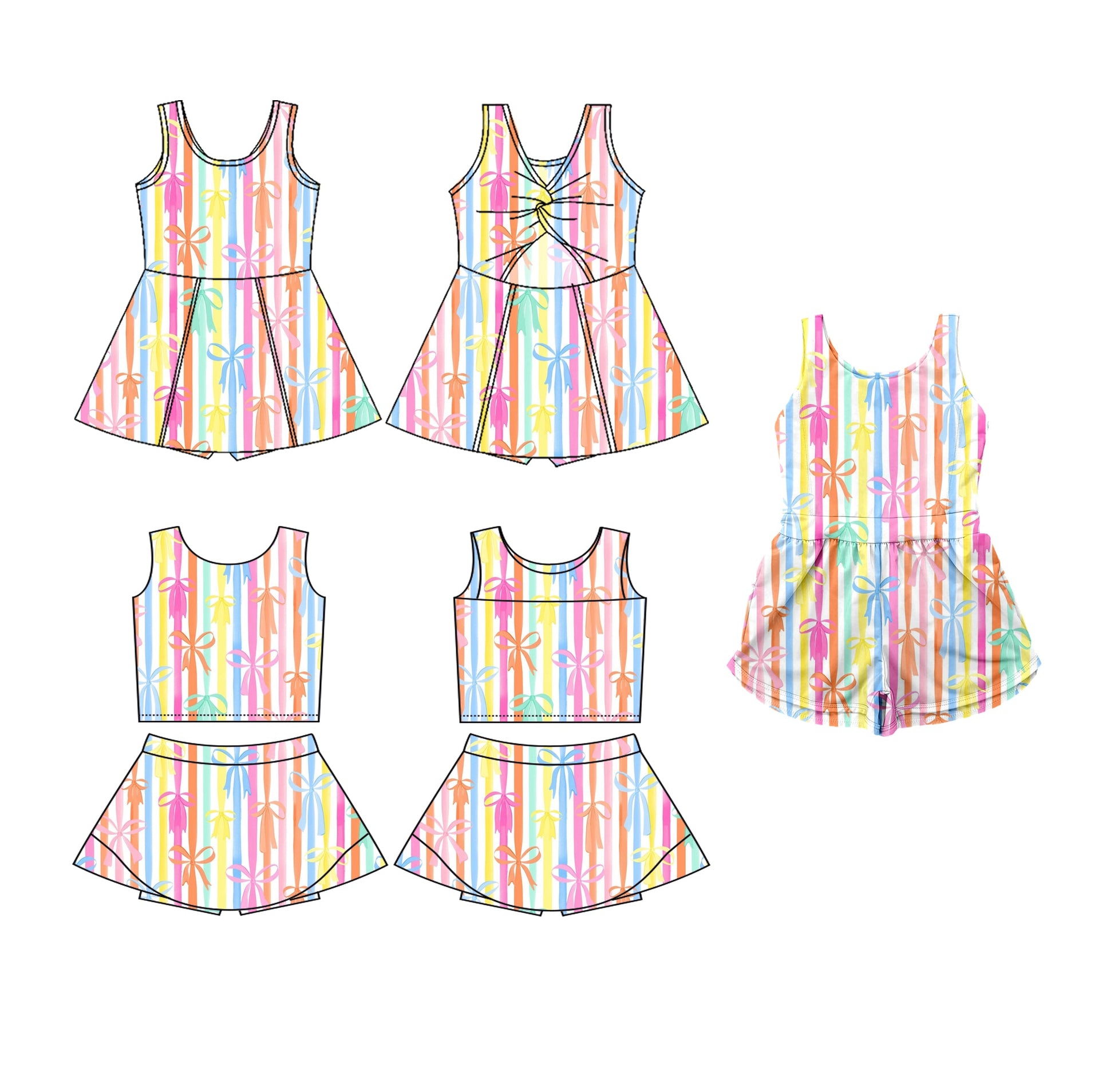 Baby Girl Sleeveless Stripes Bows Sibling Jumpsuit Dress Set ( Moq 5 Each Style ) 3.19