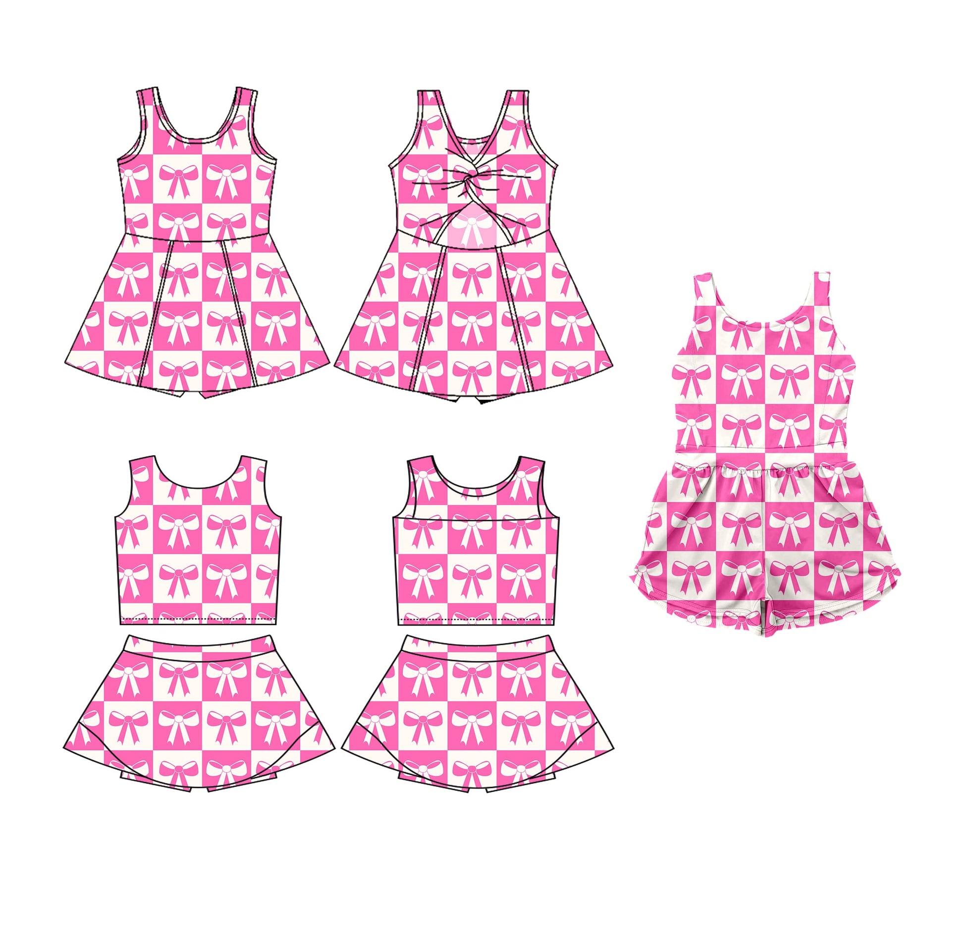 Baby Girl Sleeveless Checked Bows Sibling Jumpsuit Dress Set ( Moq 5 Each Style ) 3.19