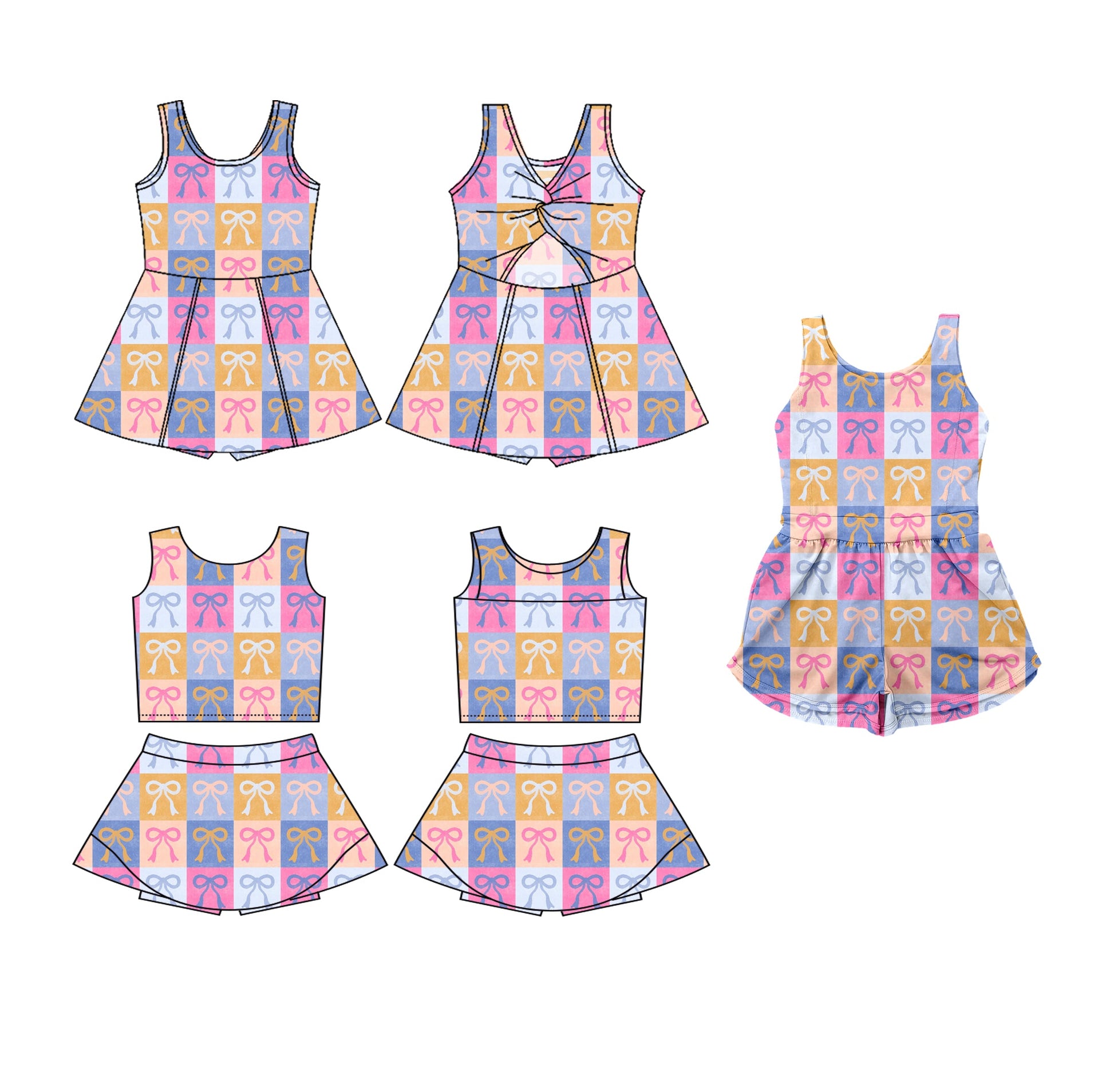 Baby Girl Sleeveless Plaid Bows Sibling Jumpsuit Dress Set ( Moq 5 Each Style ) 3.19