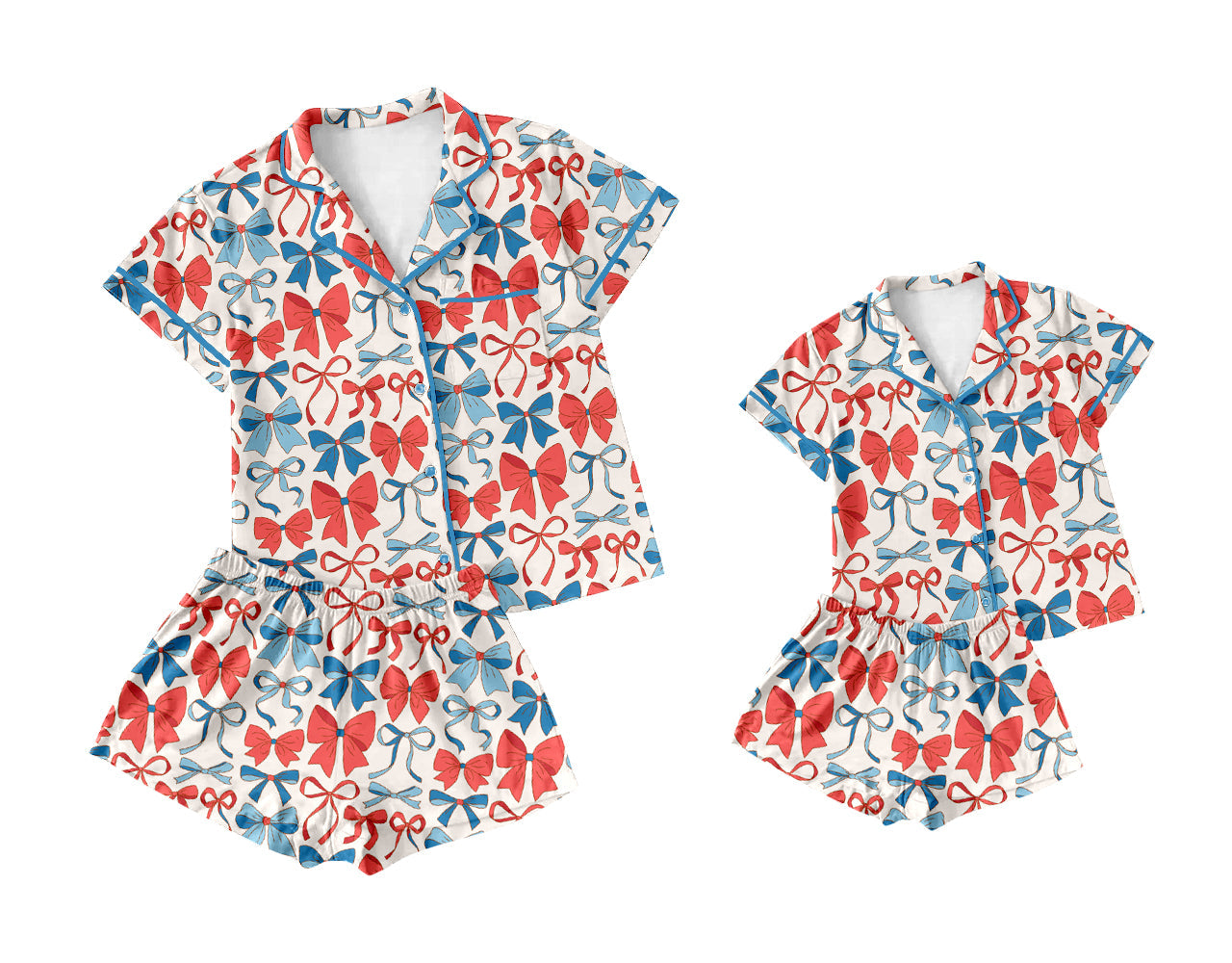 Baby Girl Adult Women Short Sleeves Bows Sibling Buttons Pajamas Set ( Moq 5 Each Style ) 3.19