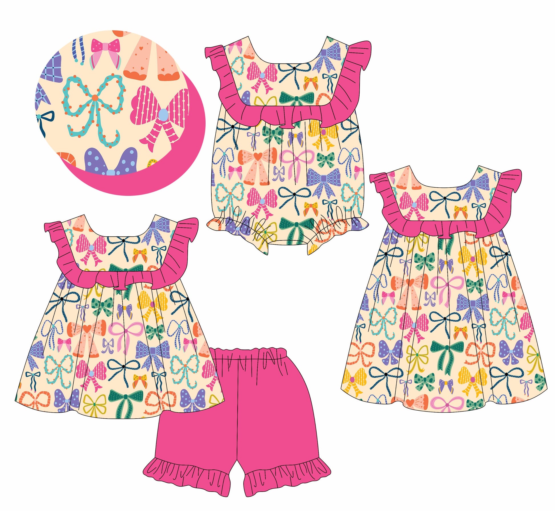 Baby Girl Short Sleeves Colorful Bows Sibling Romper Dress Set ( Moq 5 Each Style ) 3.19