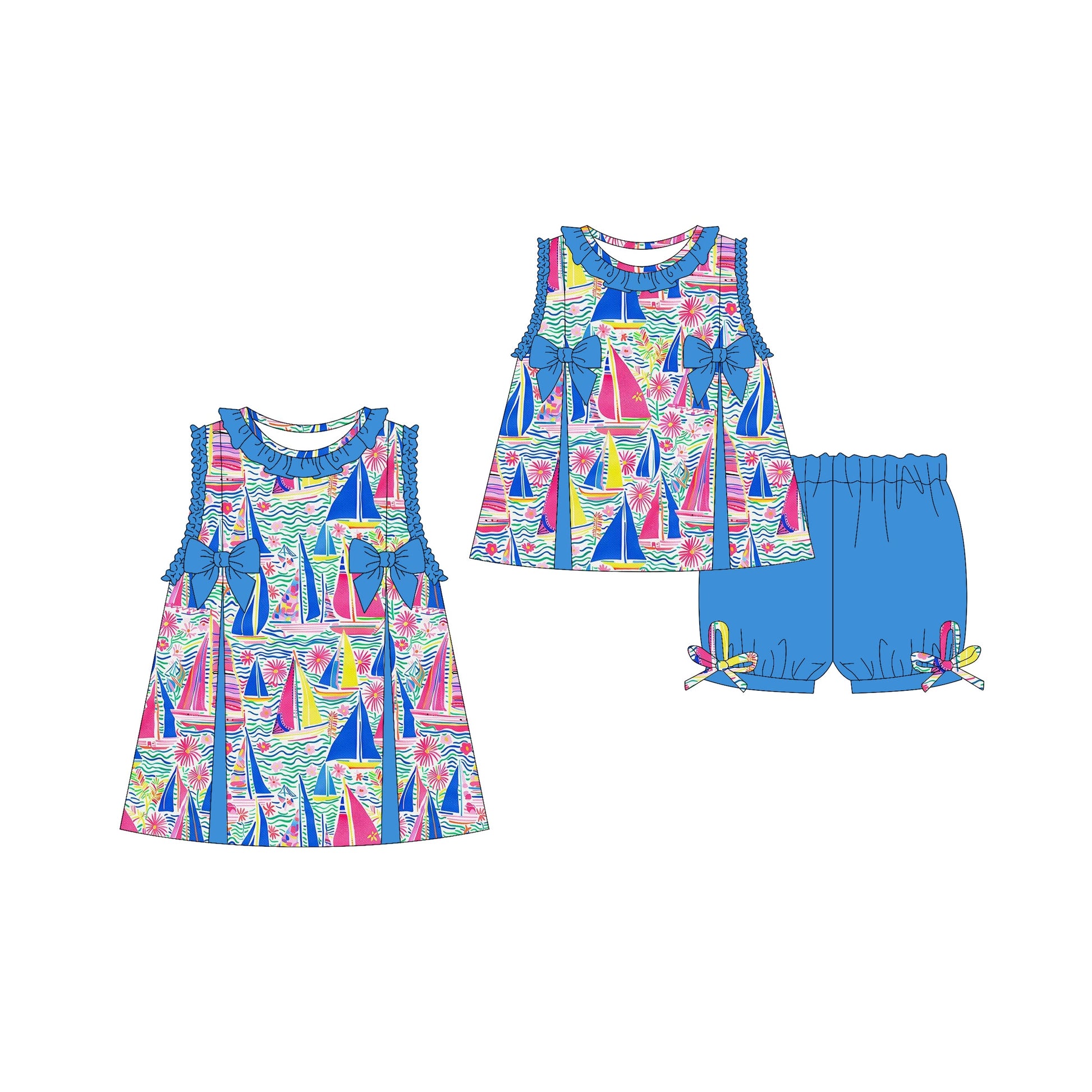 ( Moq 5 Each Style ) Baby Girl Sleeveless Blue Bows Boats Flower Sibling Dress Set 3.22