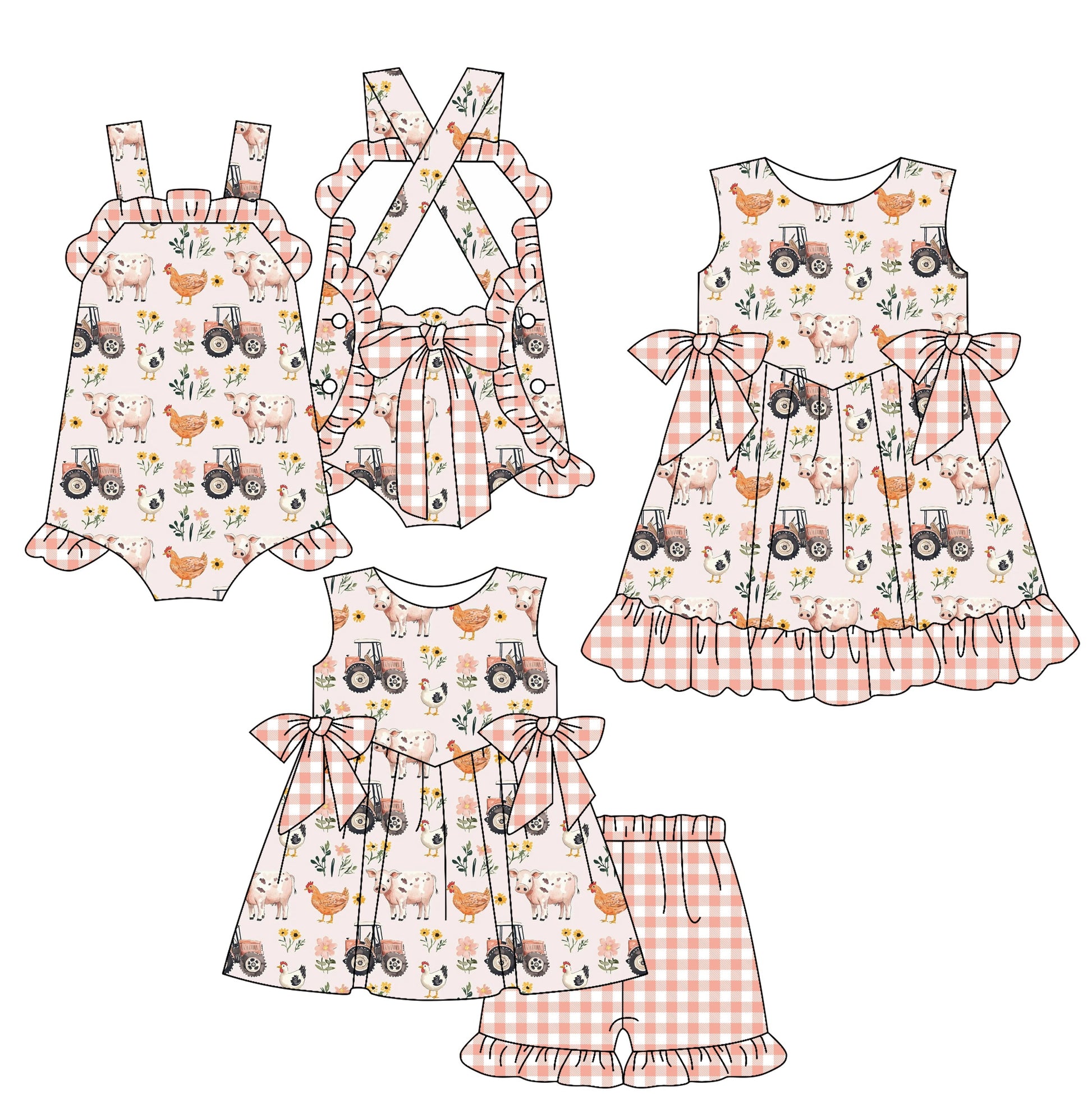Baby Girl Farm Animals Tractors Flower Sibling Romper Dress Set ( Moq 5 Each Style ) 3.22