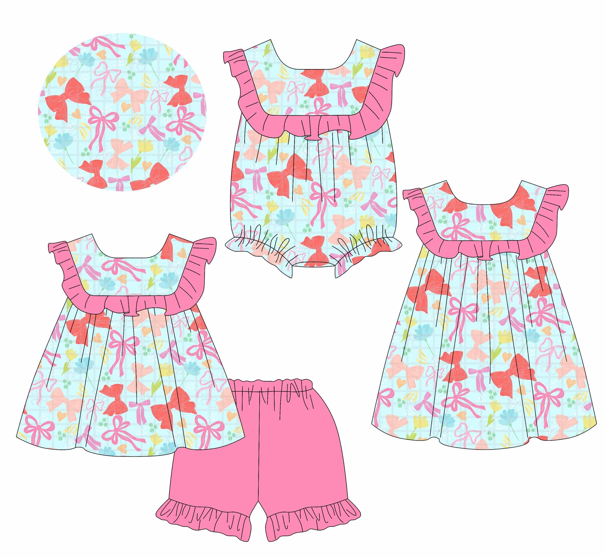 Baby Girl Short Sleeves Flower Bows Sibling Romper Dress Set ( Moq 5 Each Style ) 3.22