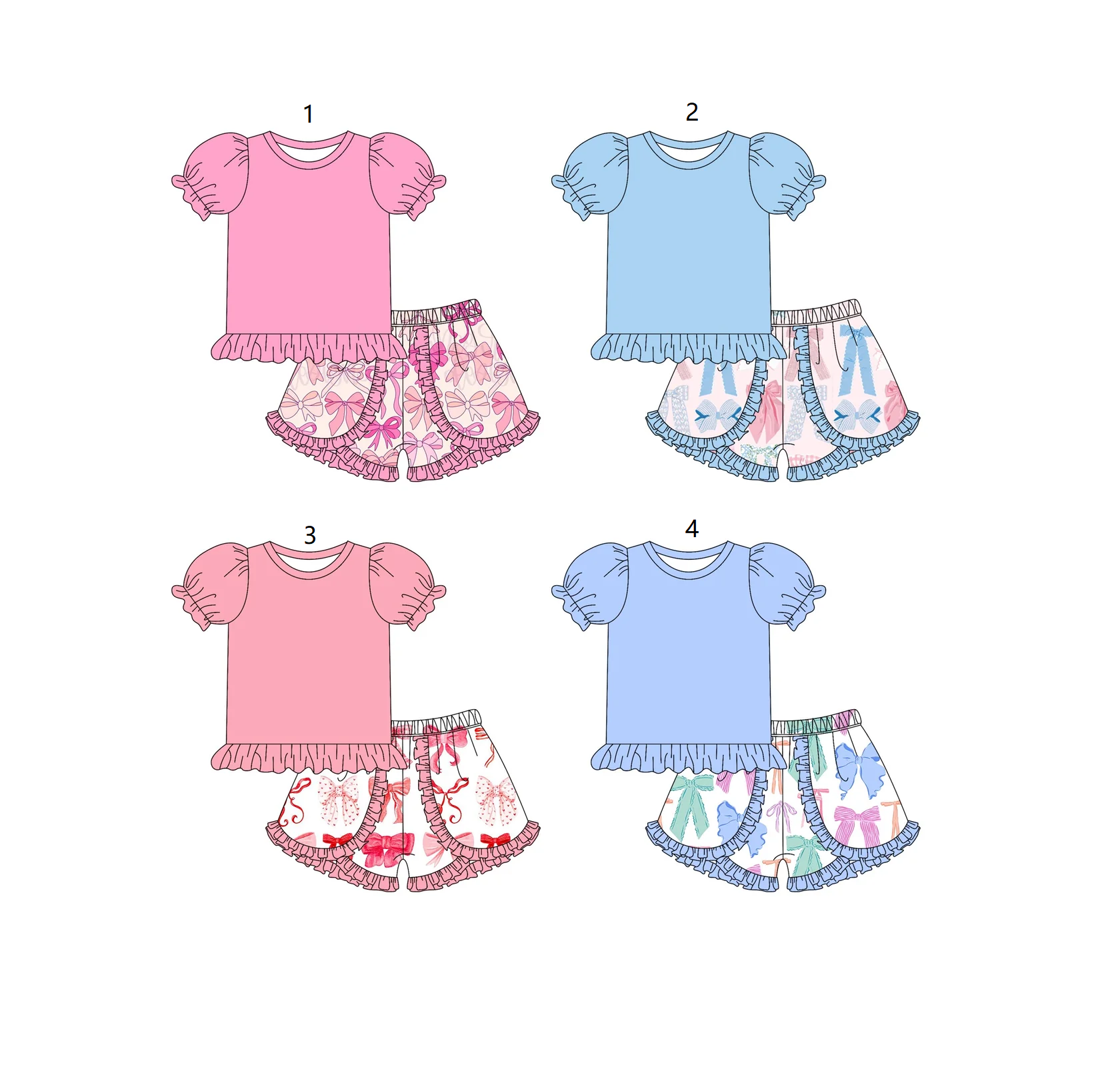 ( Moq 5 Each Style ) Baby Girl Short Sleeves Cotton Tops Bows Shorts Sibling Set 3.25