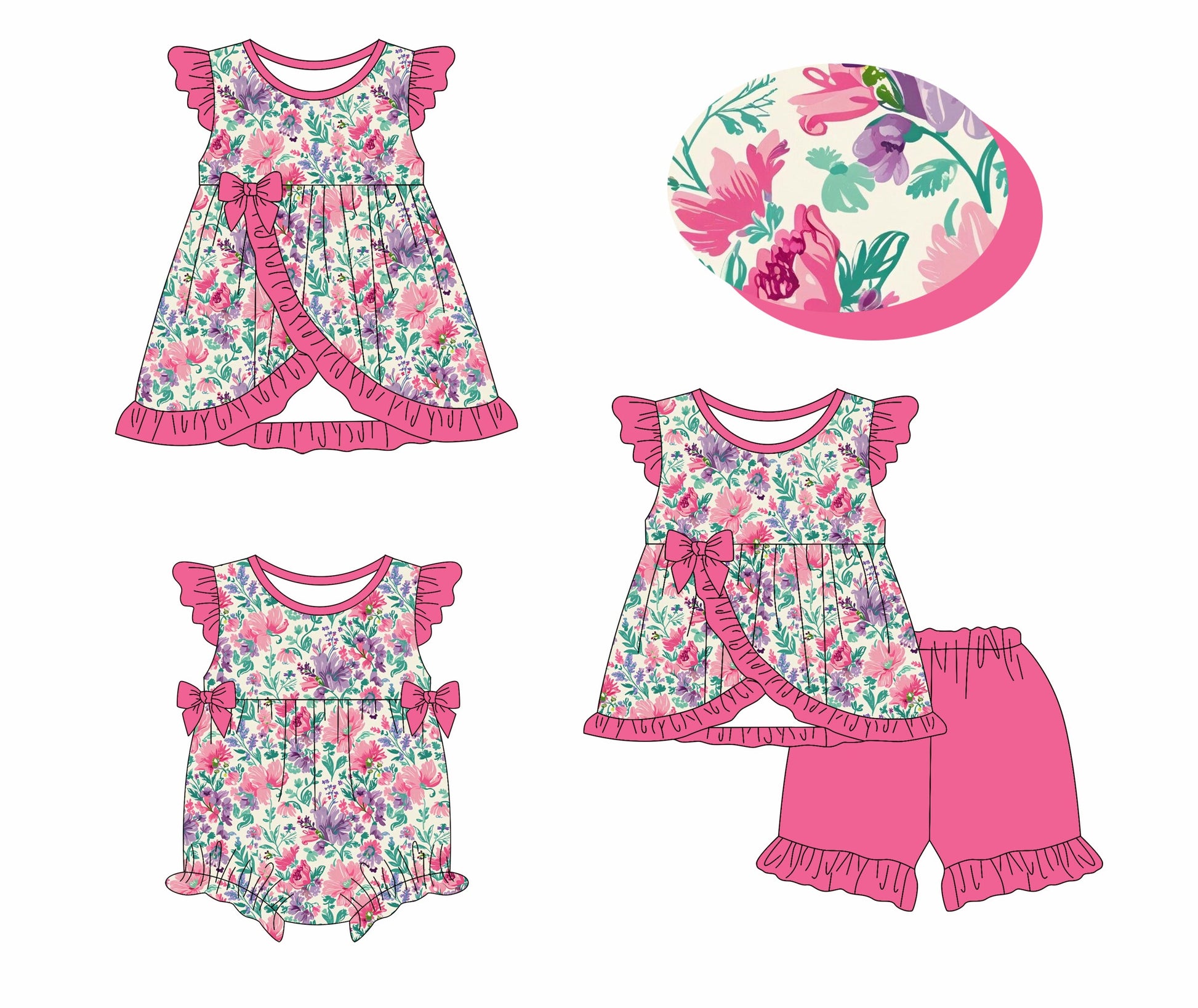 ( Moq 5 Each Style ) Baby Girl Short Sleeves Flower Bows Sibling Romper Dress Set 3.27