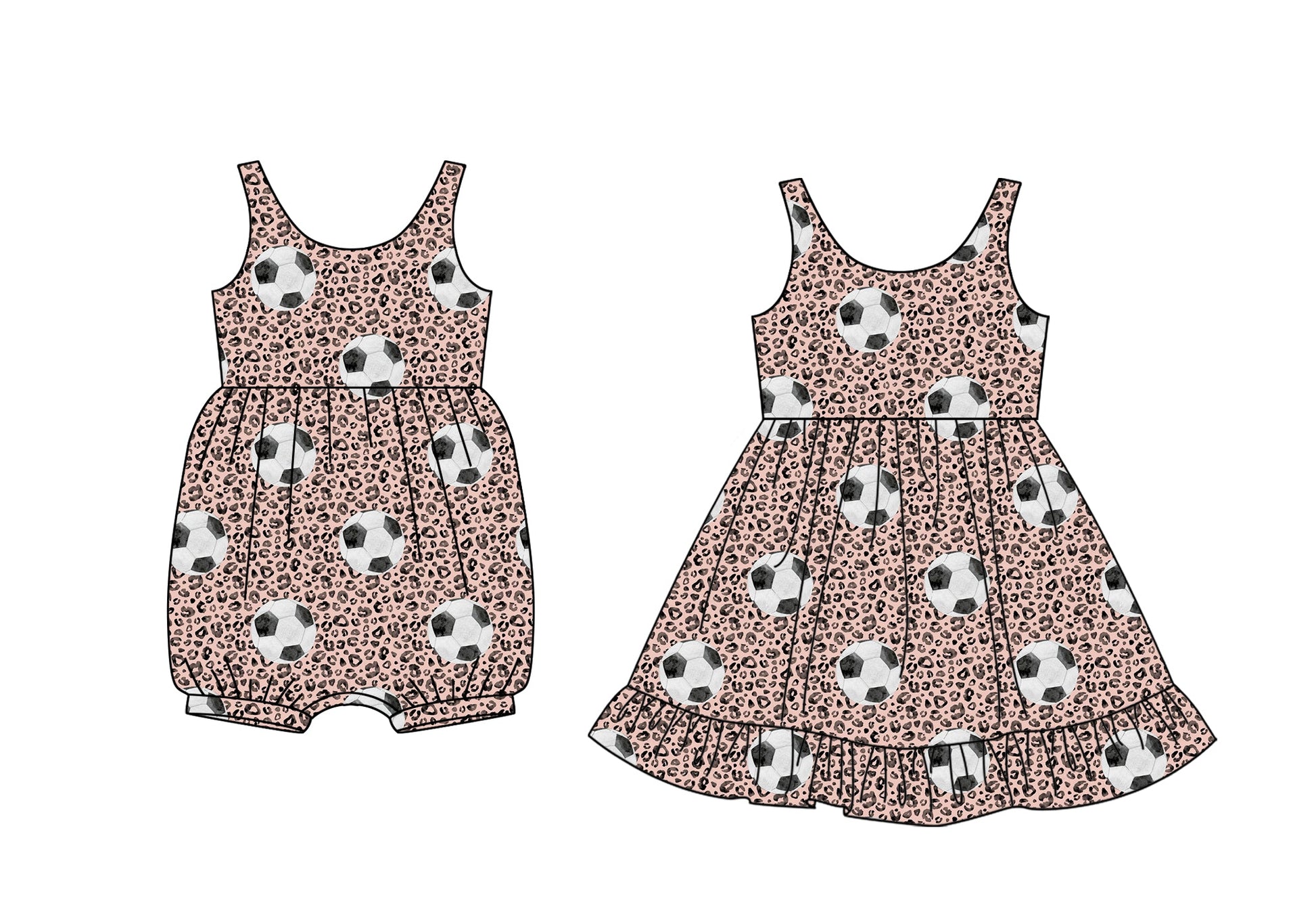 ( Moq 5 Each Style ) Baby Girl Sleeveless Soccer Leopard Sibling Romper Dress 3.27
