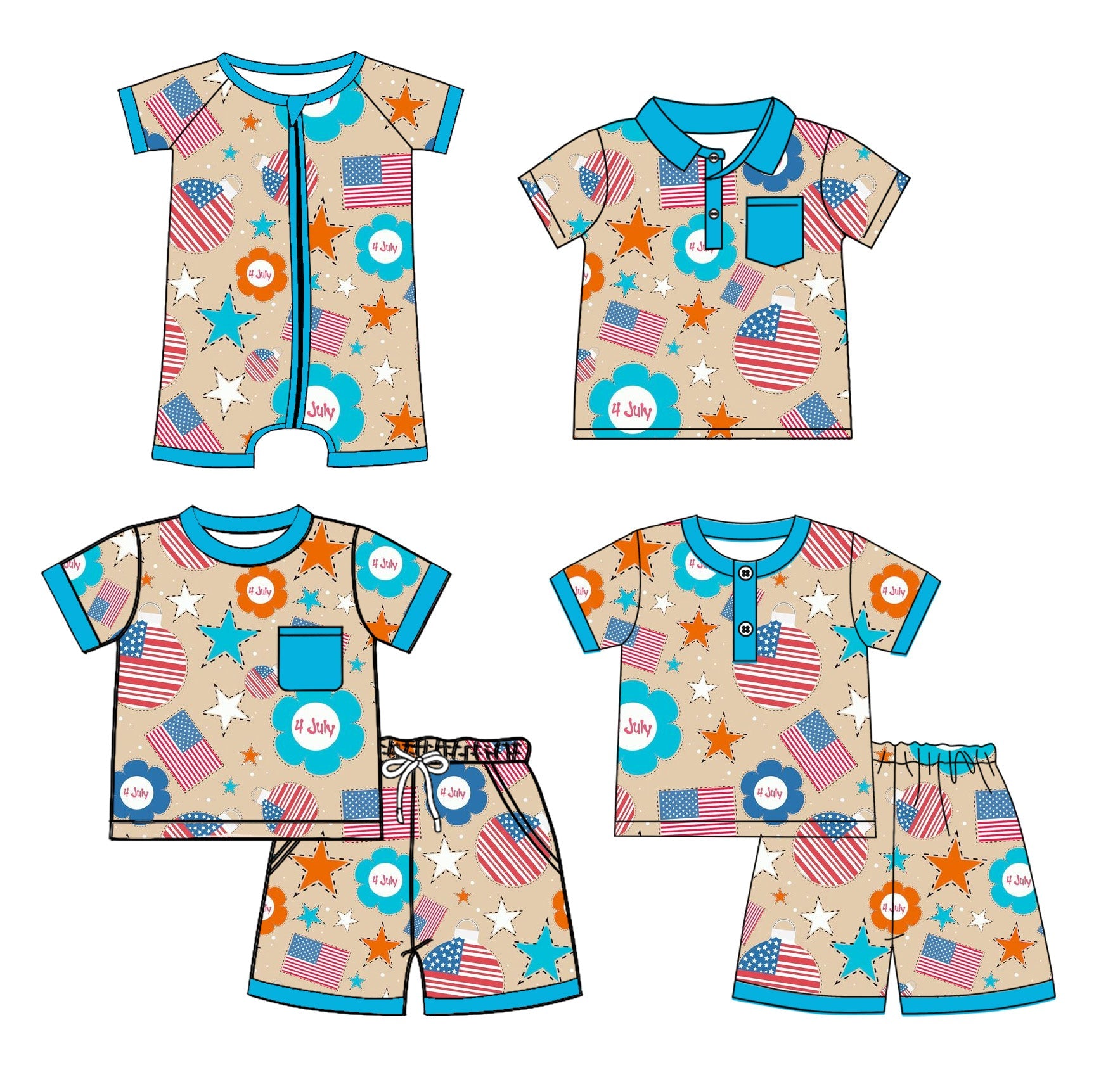 Baby Boy Short Sleeves Stars Flags Sibling Romper Shirt Set ( Moq 5 Each Style ) 3.3