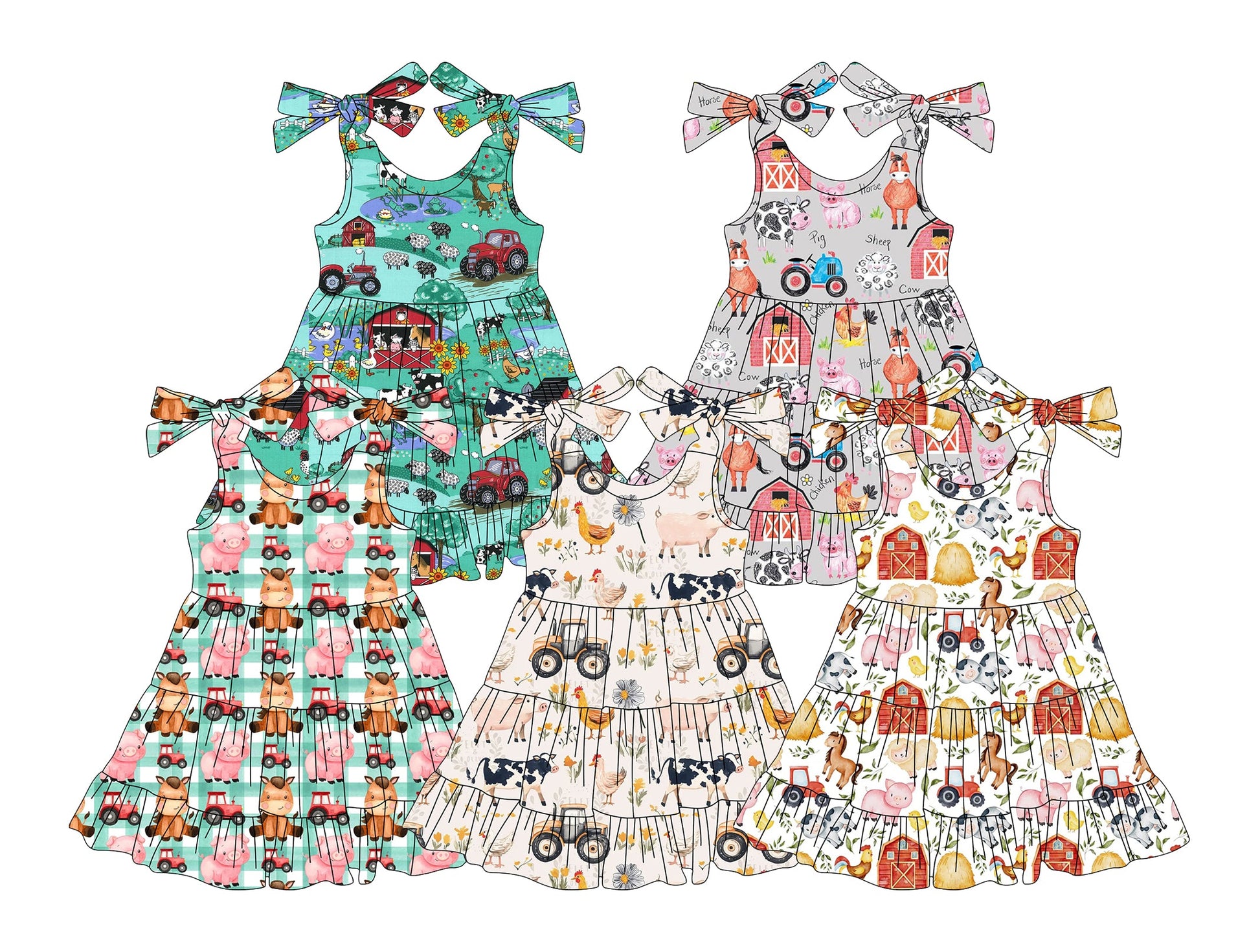 Baby Girl Toddler Bows Straps Farm Animals Sibling Dress ( Moq 5 Each Style ) 3.4