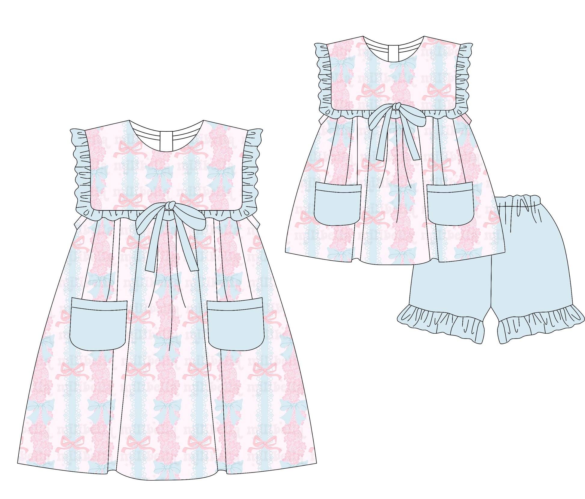Baby Girl Blue Bows Pockets Sibling Dress Set ( Moq 5 Each Style ) 3.5