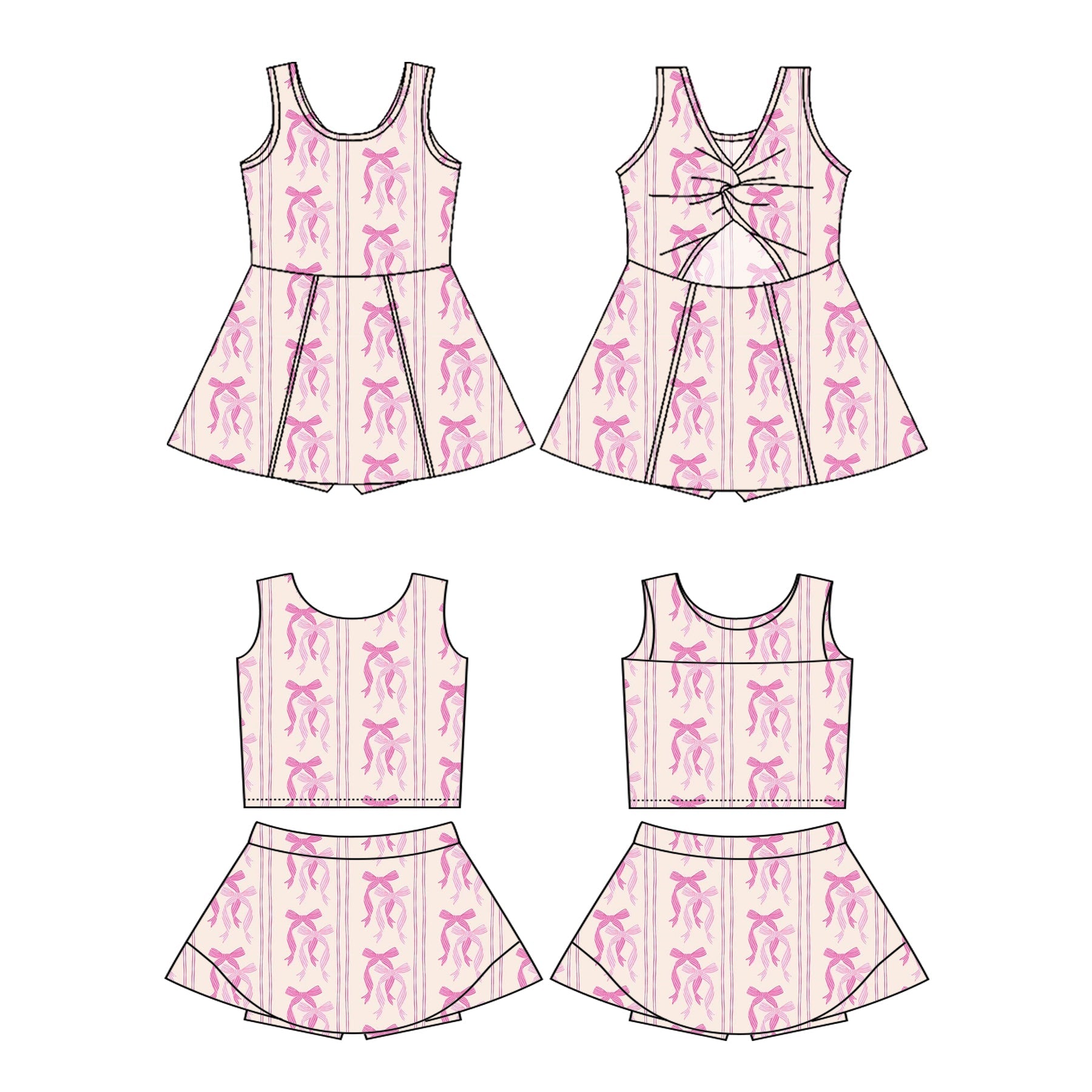 Baby Girl Sleeveless Pink Bows Sibling Skort Dress Set ( Moq 5 Each Style ) 3.7