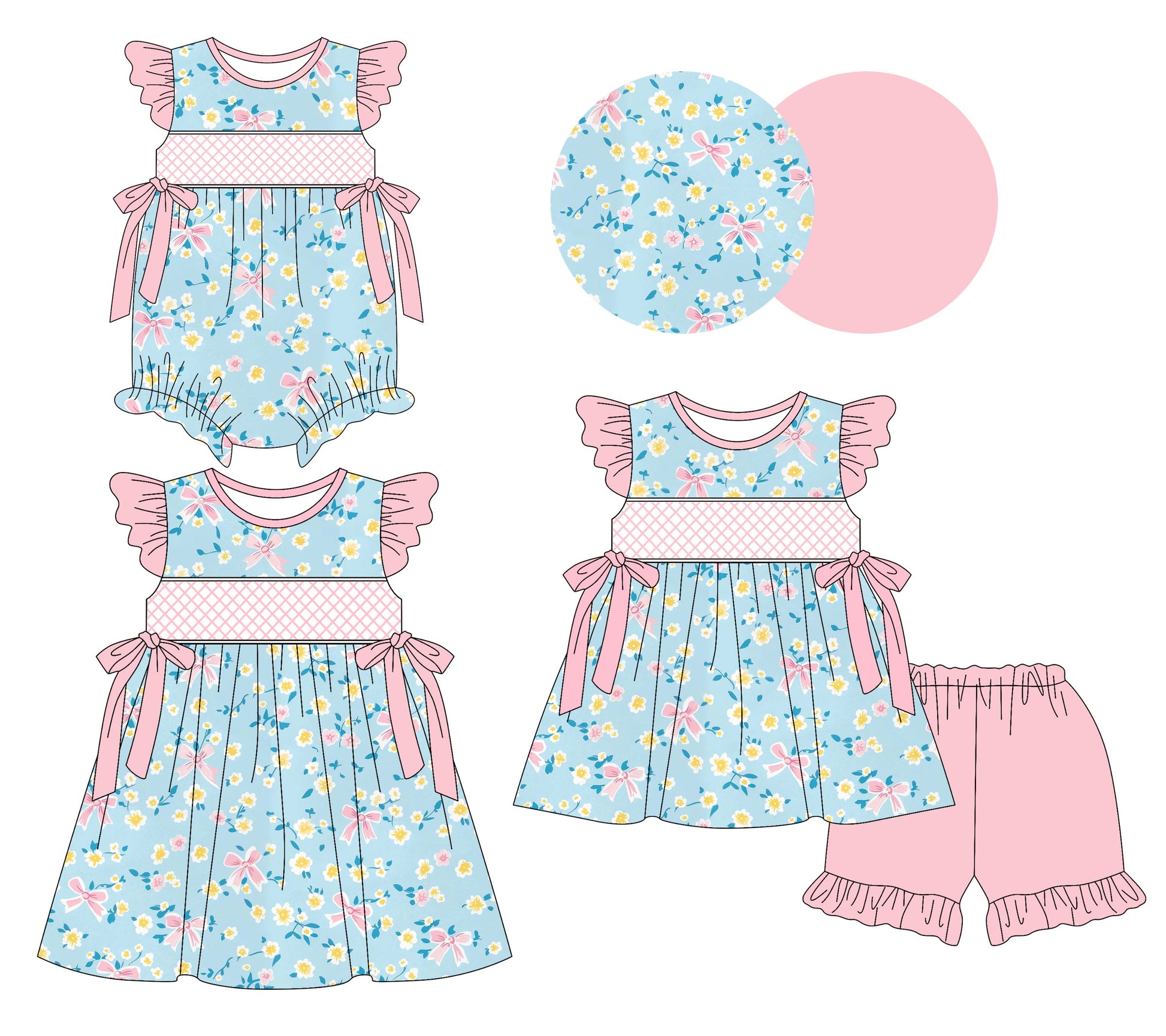 Baby Girl Short Sleeves Bows Floral Sibling Romper Dress Set ( Moq 5 Each Style ) 3.7