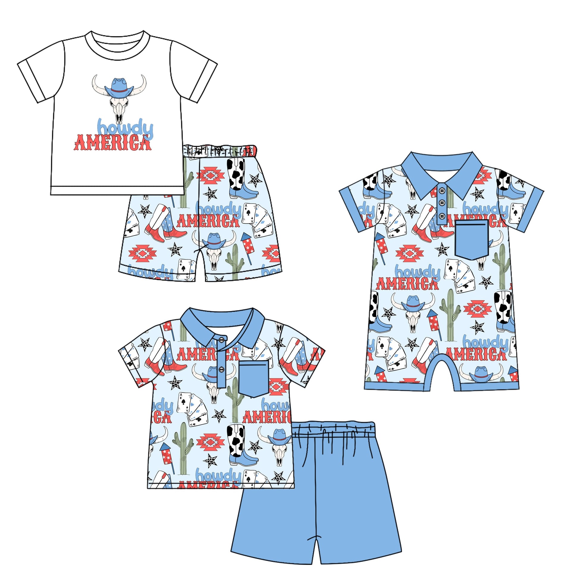 Baby Boy Short Sleeves Western Cow Sibling Romper Set ( Moq 5 Each Style ) 4.1