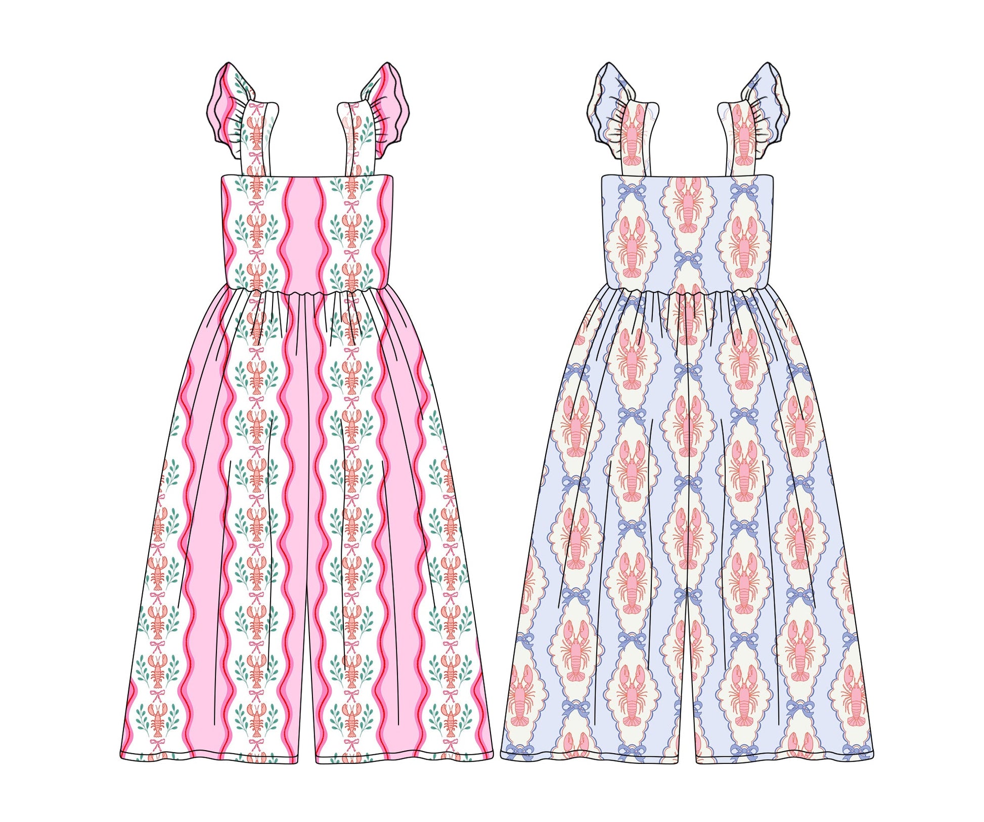 Baby Girl Short Sleeves Crawfish Sibling Jumpsuit ( Moq 5 Each Style ) 4.2