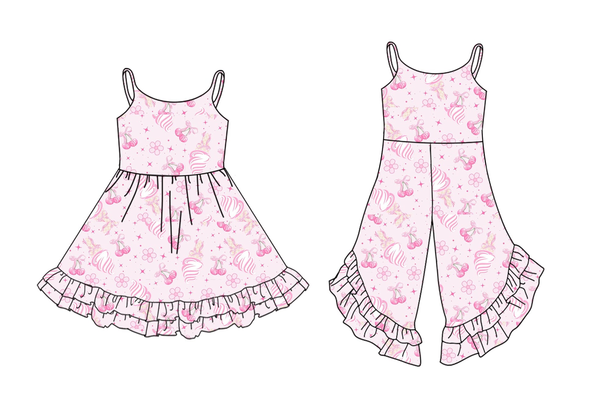 ( Moq 5 Each Style ) Baby Girl Straps Flower Bows Sibling Summer Pink Dress Jumpsuit 4.23