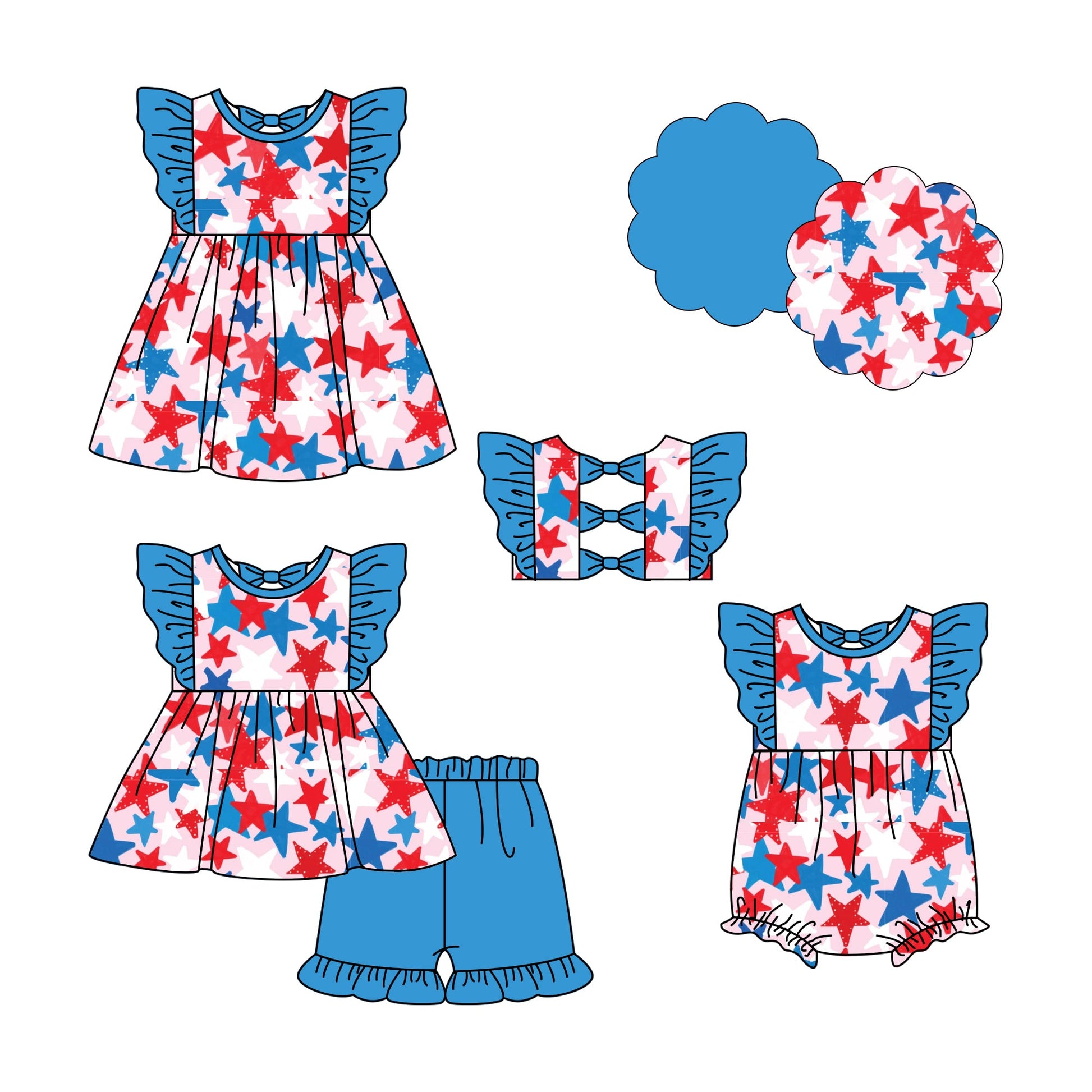 ( Moq 5 Each Style ) Baby Girl Short Sleeves Stars 4th Of July Sibling Summer Romper Dress Set 4.23