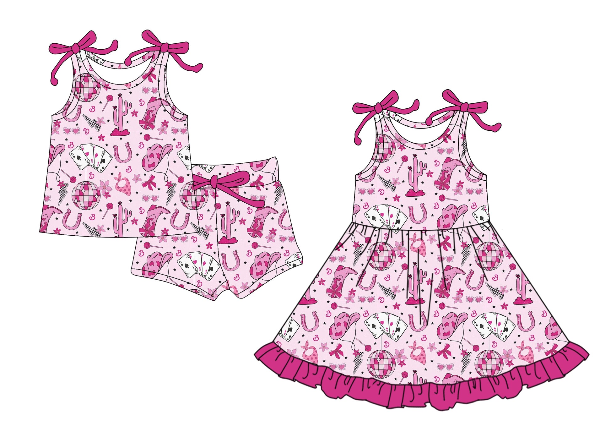 ( Moq 5 Each Style ) Baby Girl Sleeveless Boots Cactus Western Pink Sibling Summer Romper Dress Set 4.24