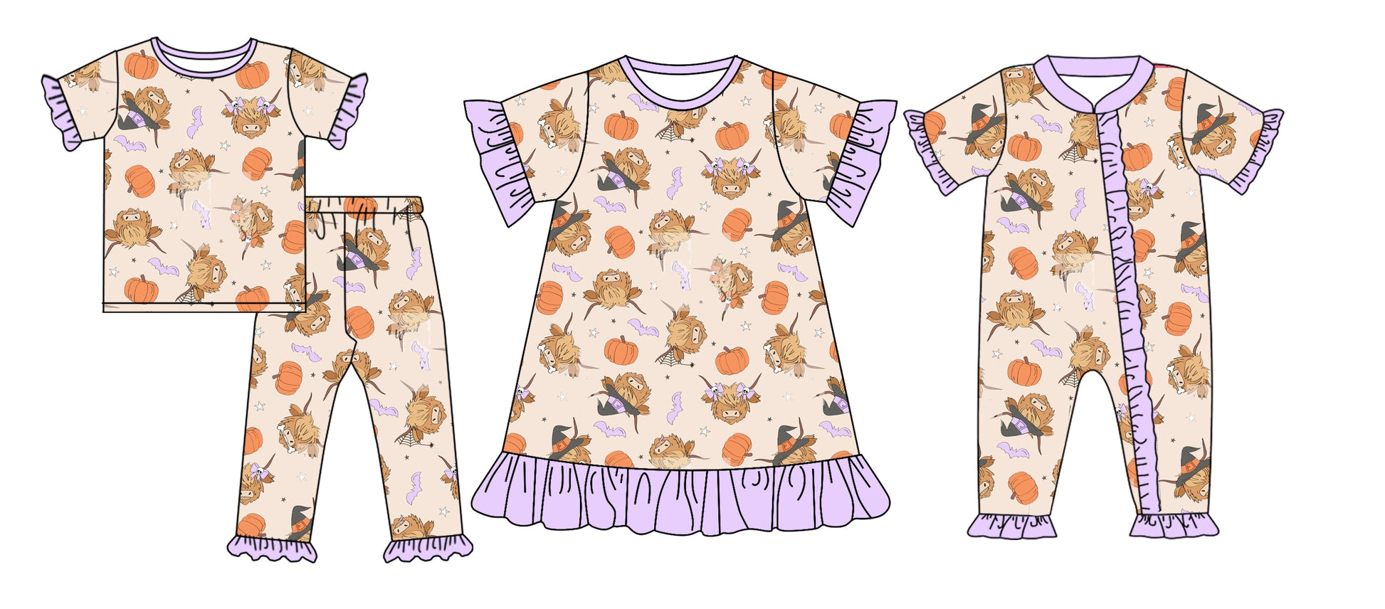 ( Moq 5 Each Style ) Baby Girl Short Sleeves Cow Pumpkins Halloween Sibling Romper Dress Set 4.25