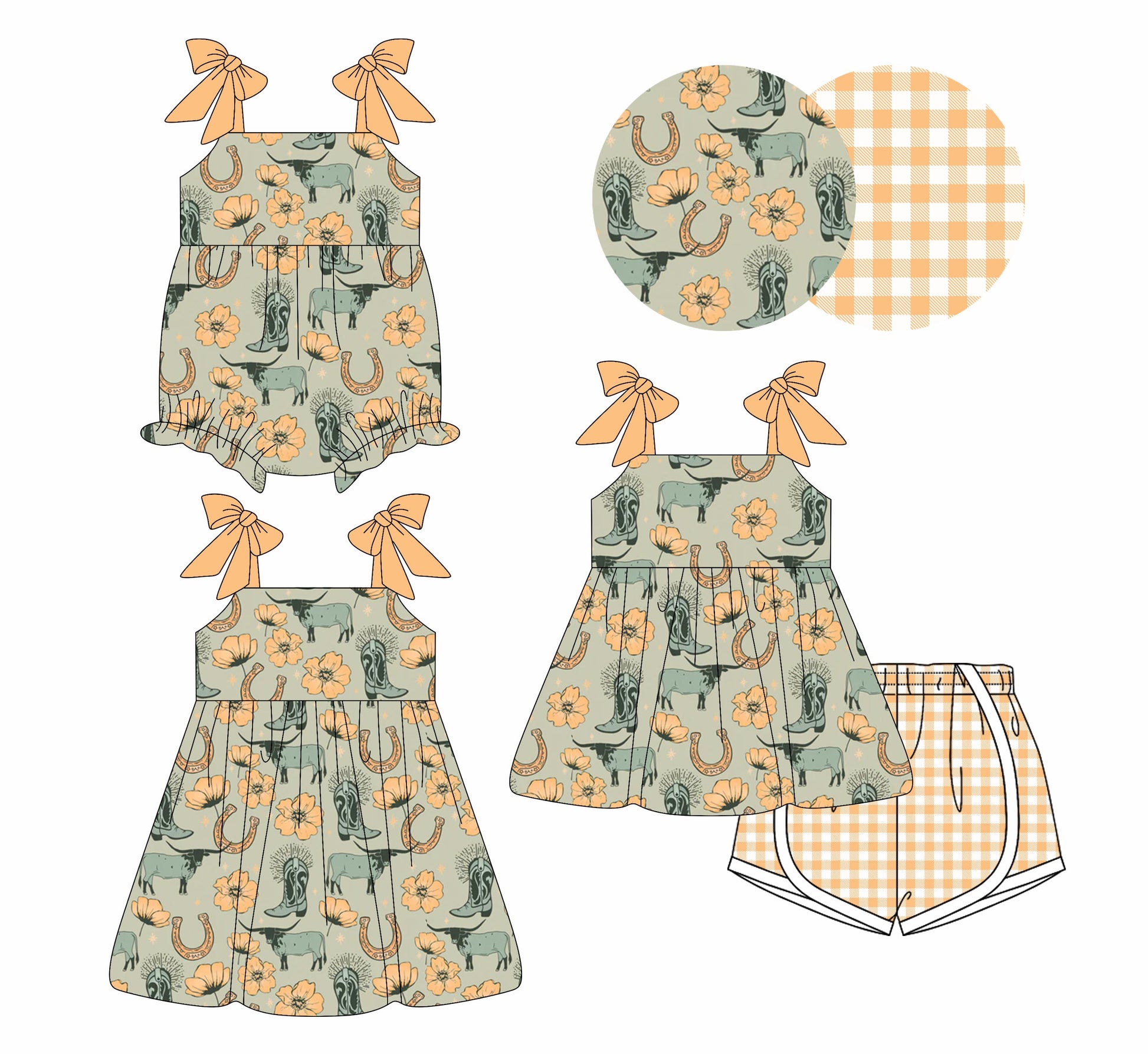 Baby Girl Straps Western Boots Flower Sibling Romper Dress Set ( Moq 5 Each Style ) 4.3