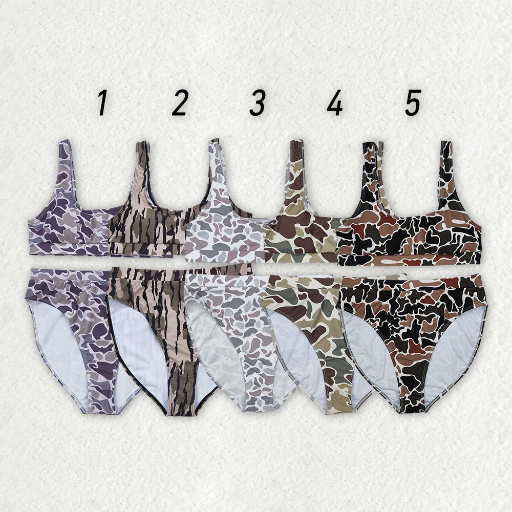 Adult Women Camo Tops Shorts Sibling Summer Swimsuit Set RTS