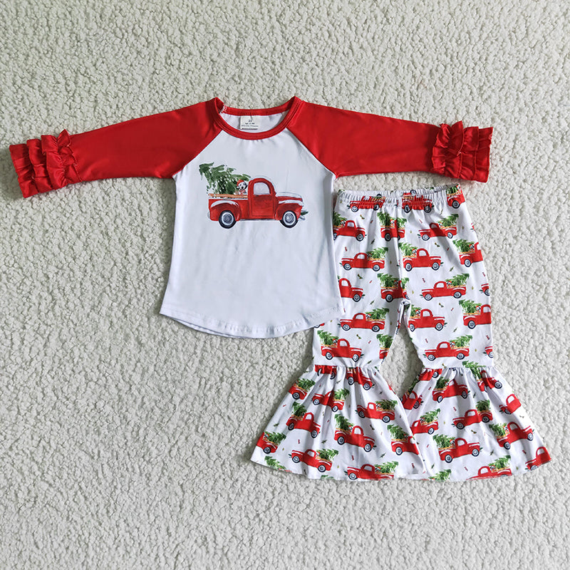 6 B9-19 Baby Girl Christmas Tree Car Outfit