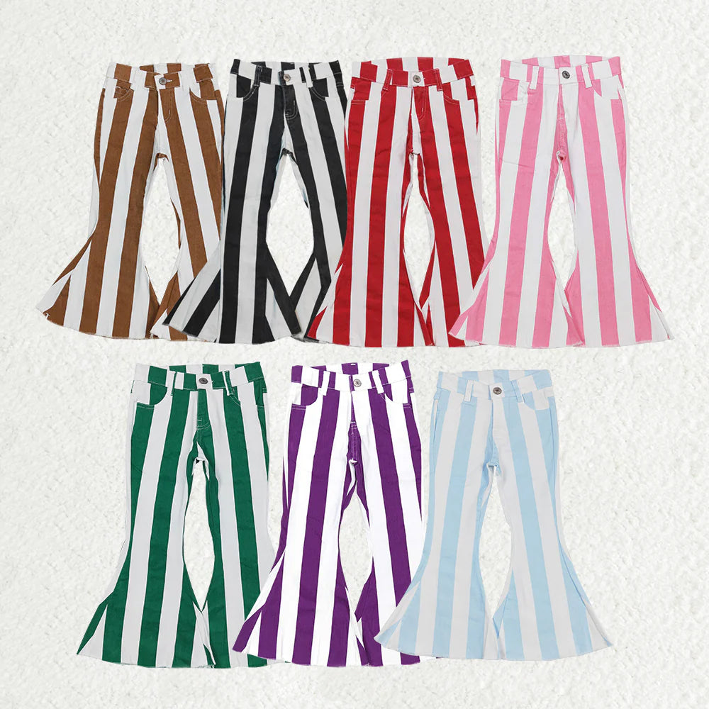 Baby Girl Toddler Stripes Denim Bell Bottom Pants Sibling Jeans RTS