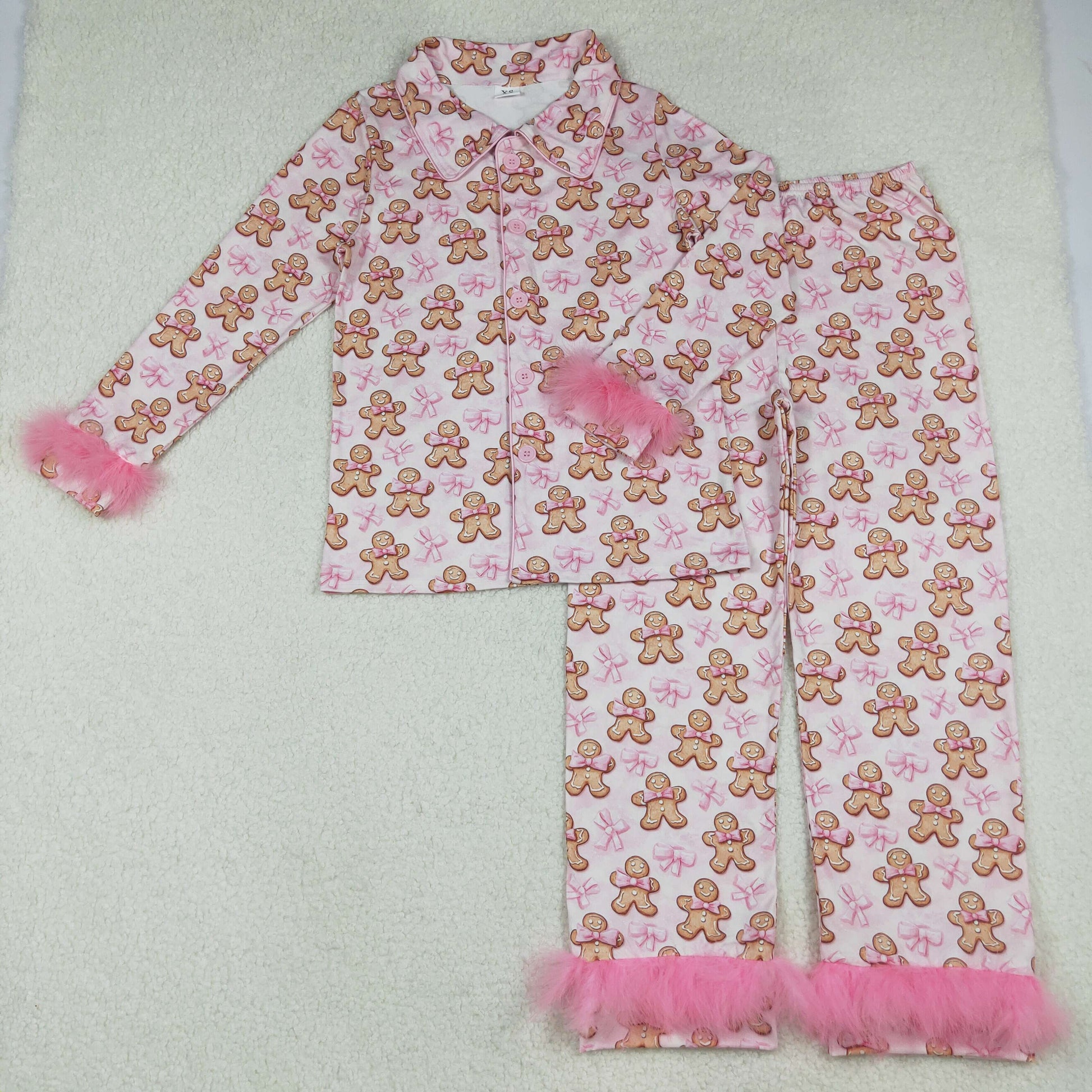 Sibling Adult Women Fur Long Sleeves Christmas Buttons Shirt Pants Pajamas Clothes Sets RTS