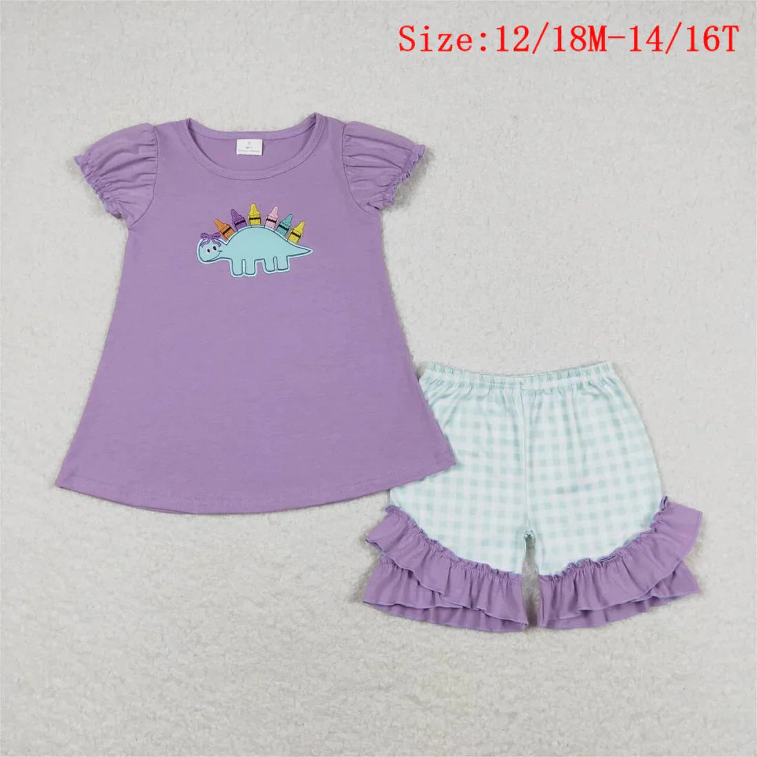 Baby Girl Short Sleeves Embroidery Sibling Back to School Outfit Clothes RTS