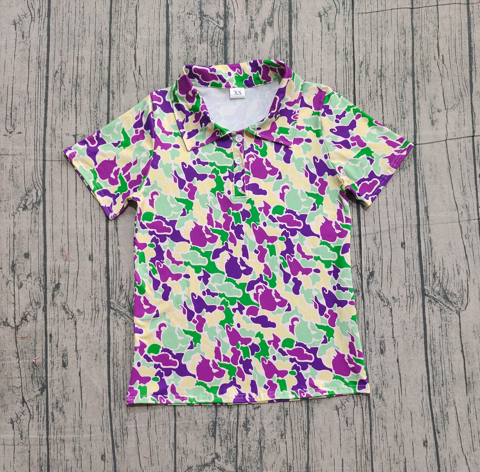 Adult Men Short Sleeves Mardi Gras Buttons Camo Shirt Tops RTS