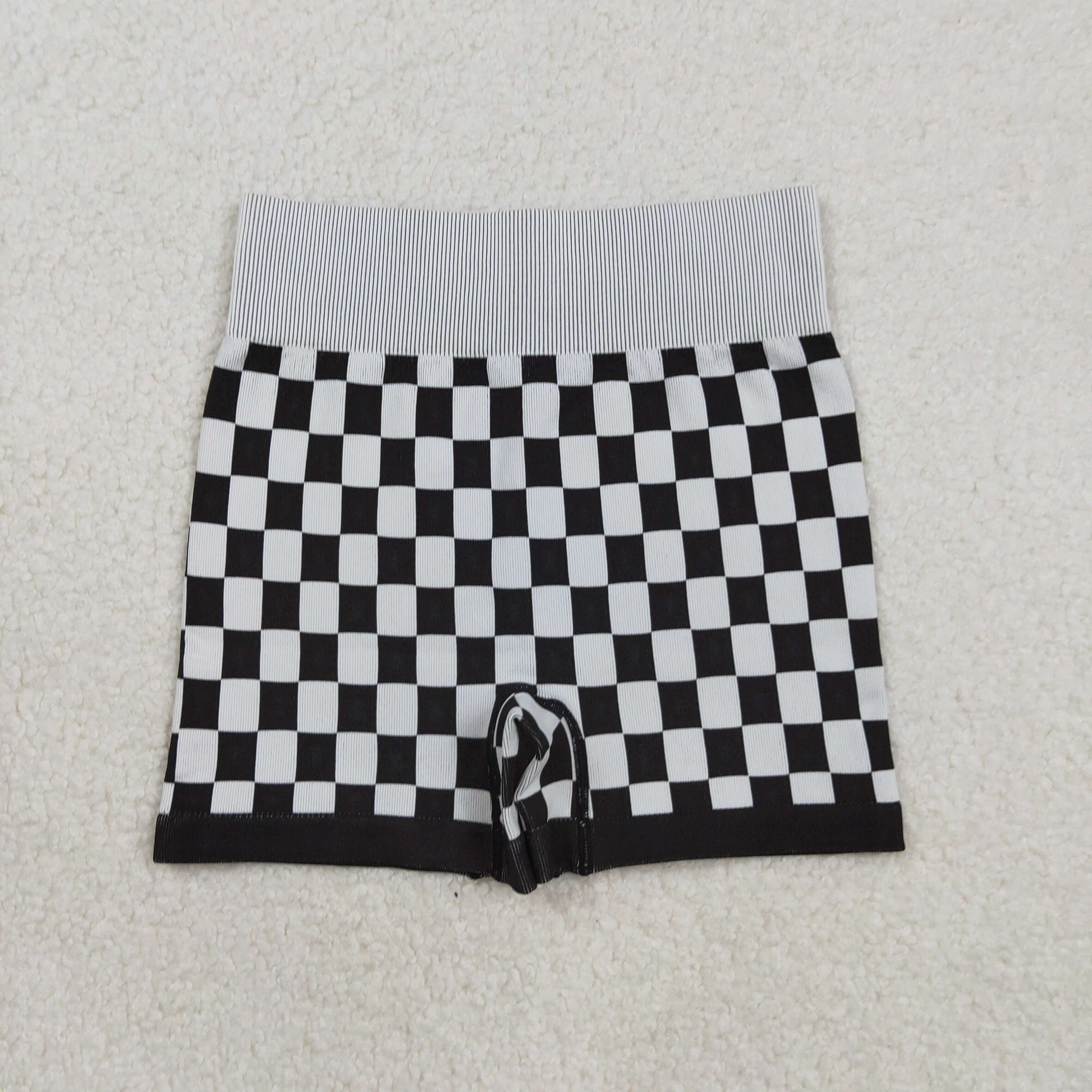 Adult Woman Black Checkered Knitted Yoga Shorts Bottom RTS